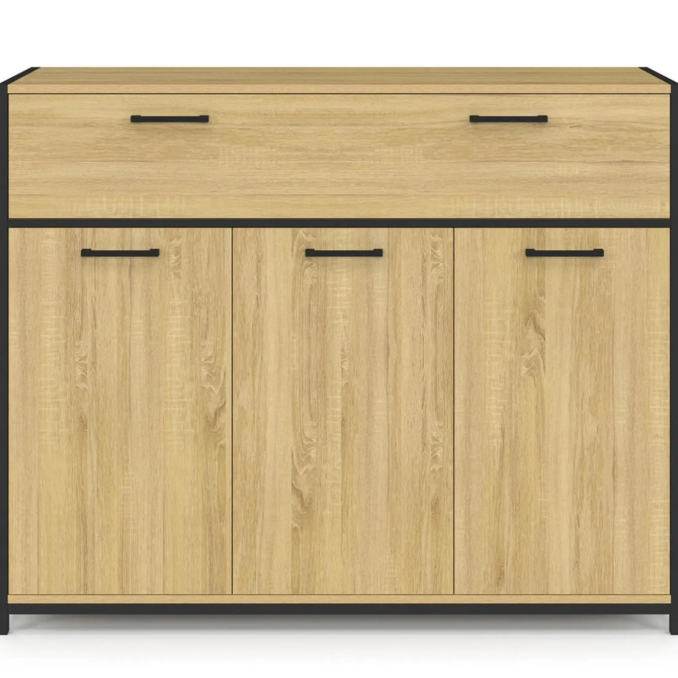 Buffet 100 cm DETROIT 3 portes et 1 tiroir design industriel