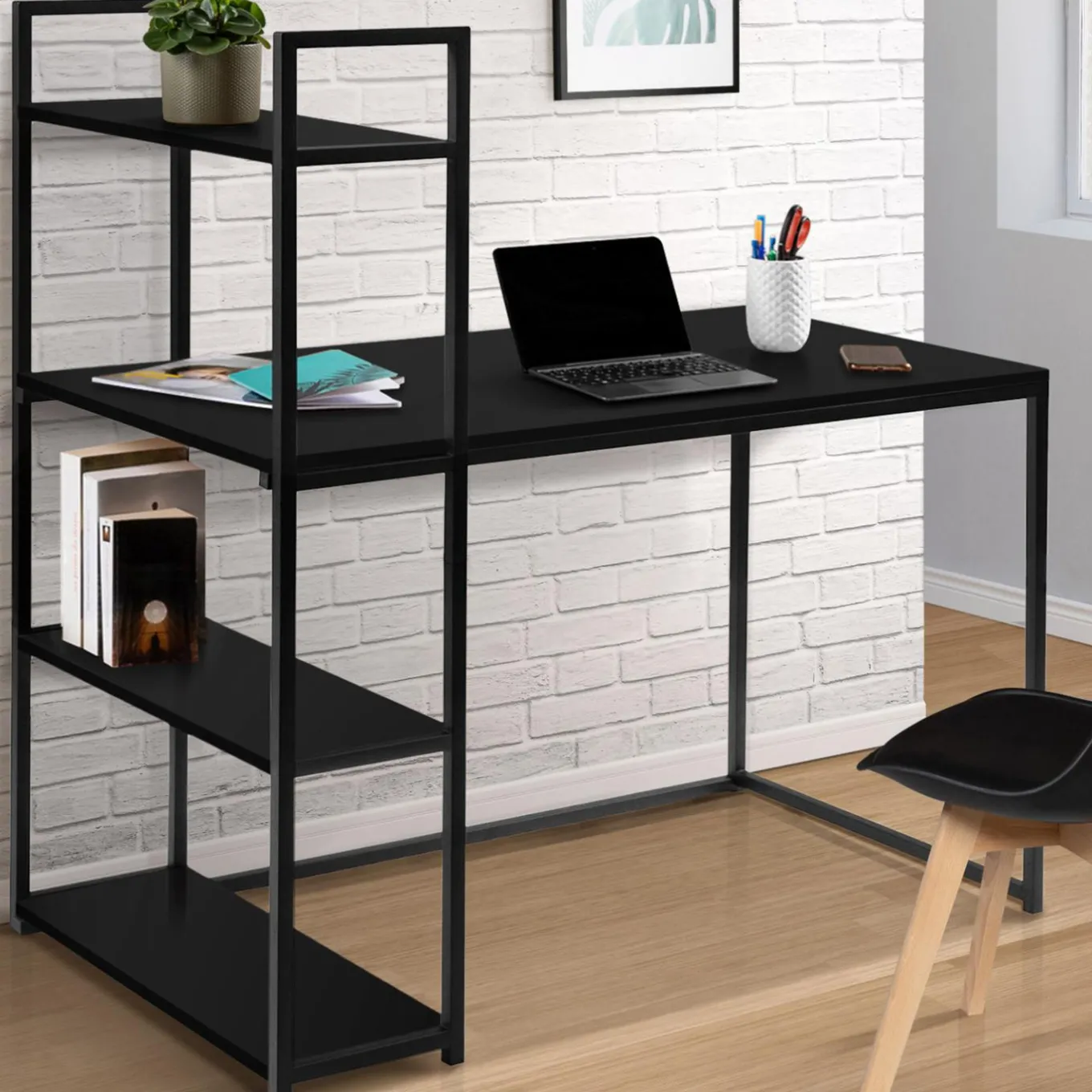 Positionnez le bureau d’un sens comme de l’autre selon votre besoin, la structure en métal et les étagères sont 100% réversibles !