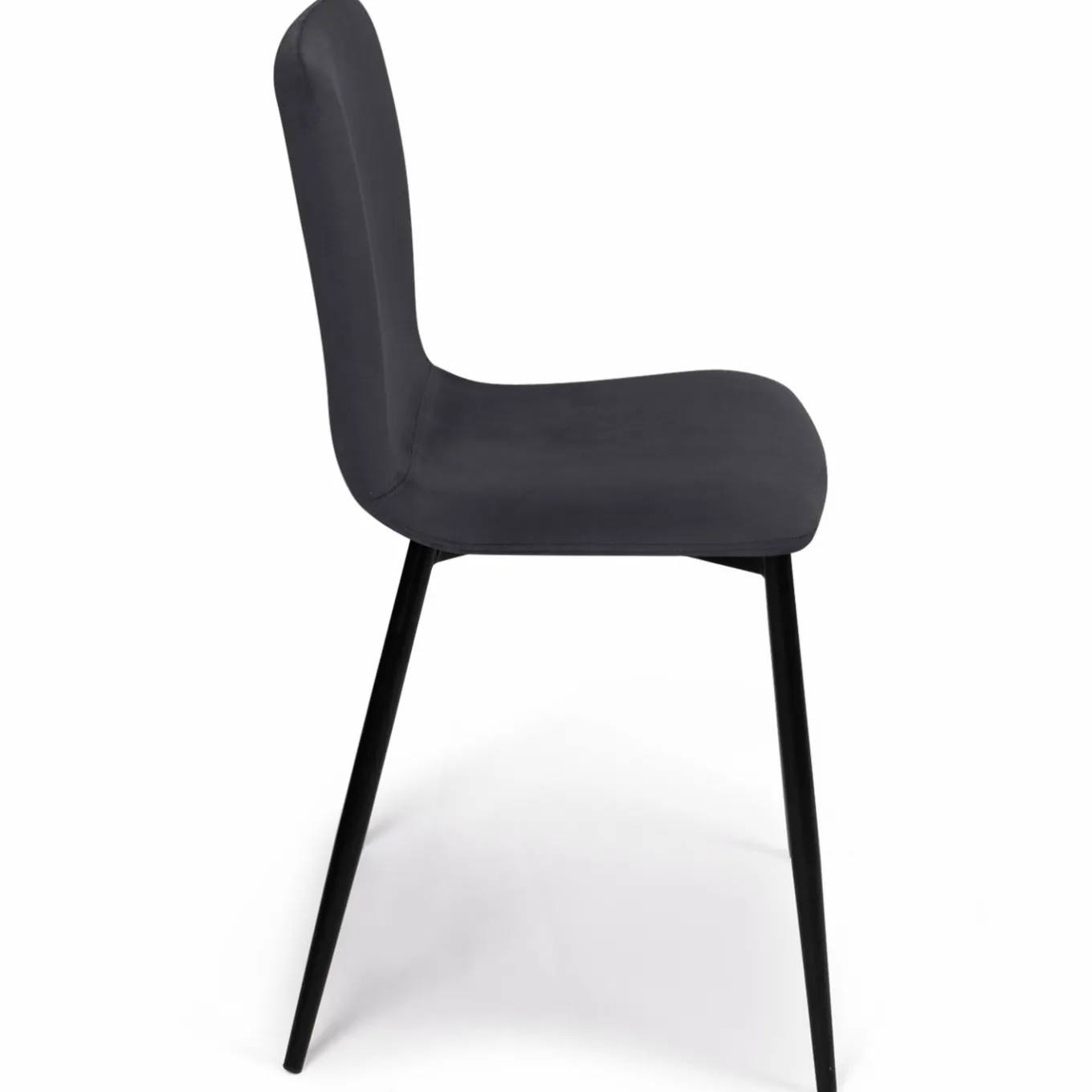 Descriptif des chaises design velours gris foncé et pieds en métal noir