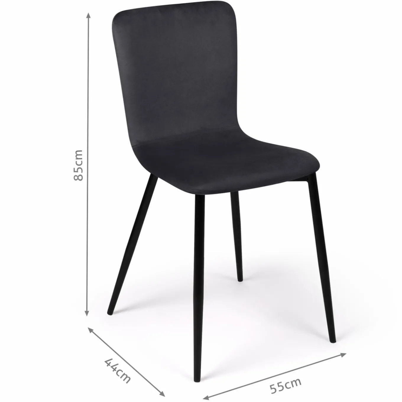 Dimensions des chaises design en velours gris x4