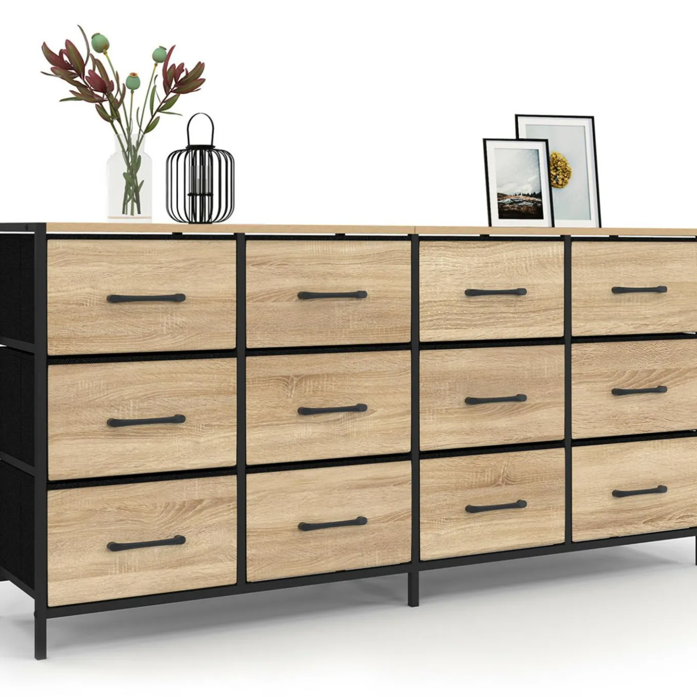 Commode 12 tiroirs en tissu UTAH 140 cm meuble de rangement design industriel