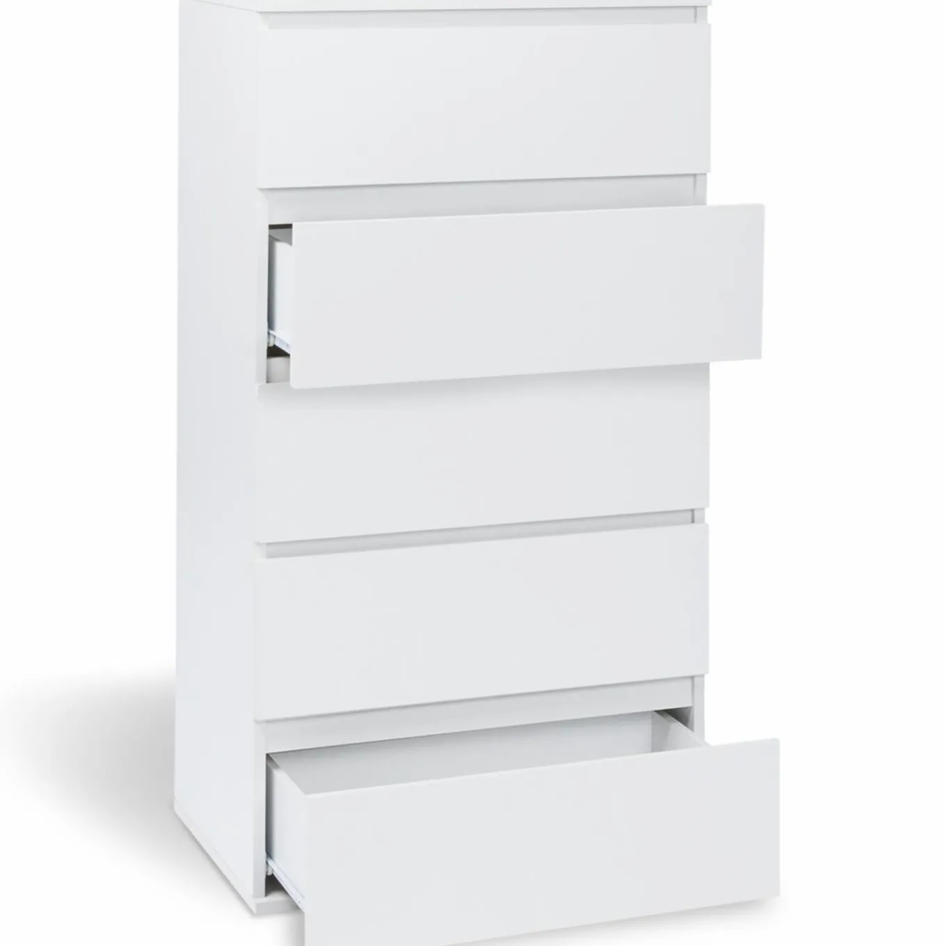 Chiffonnier 5 tiroirs TOMI 60 cm commode semainier bois blanc