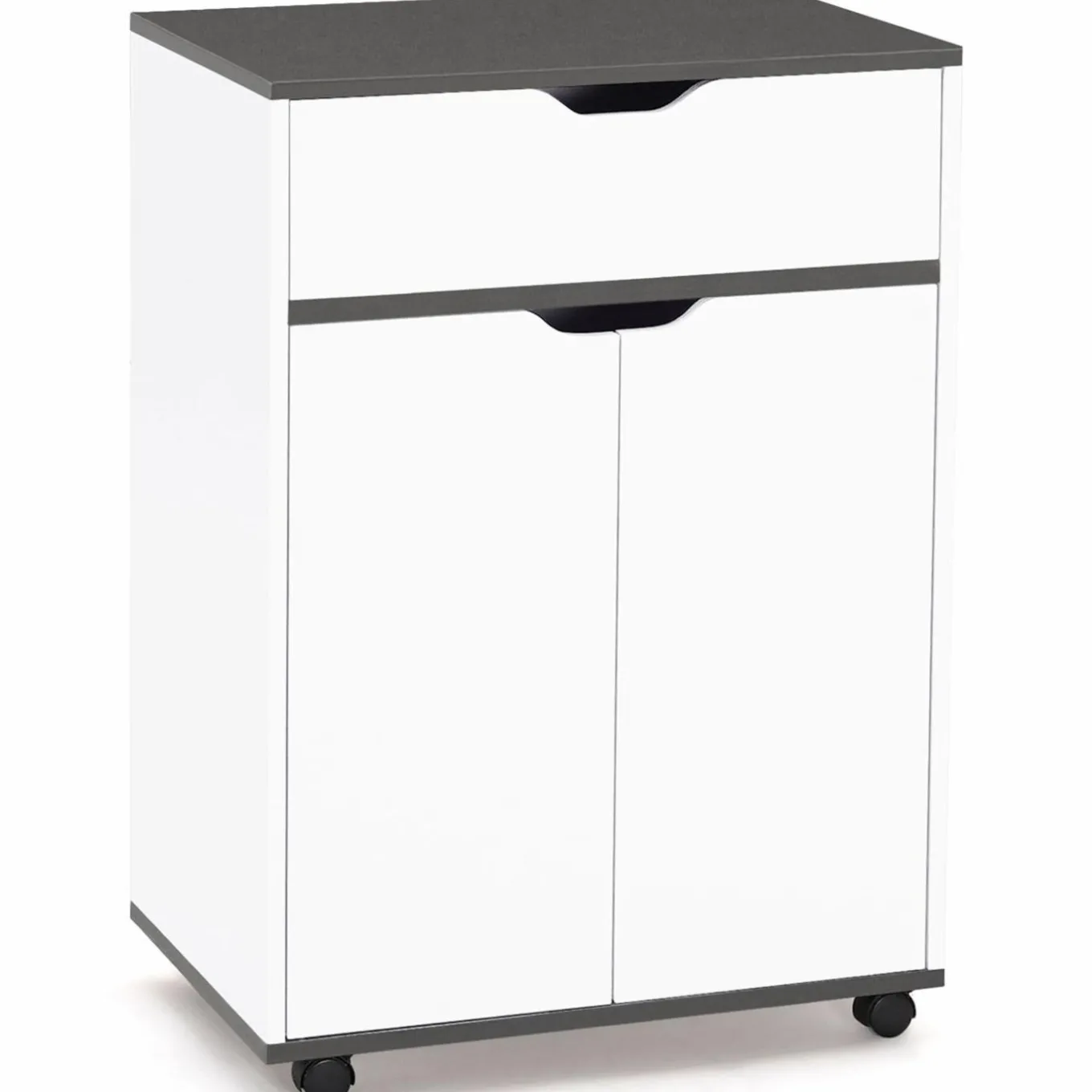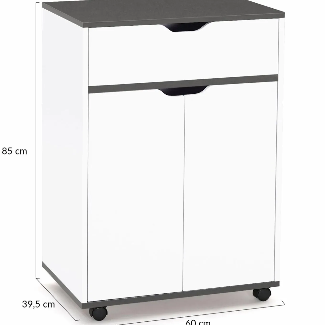 Grâce à son côté bicolore blanc et gris, cette desserte de cuisine à roulettes apporte une touche contemporaine à votre cuisine et se marie parfaitement avec votre décoration intérieure. Ce meuble peut aussi trouver sa place dans une salle de bains, une buanderie ou encore un cellier.