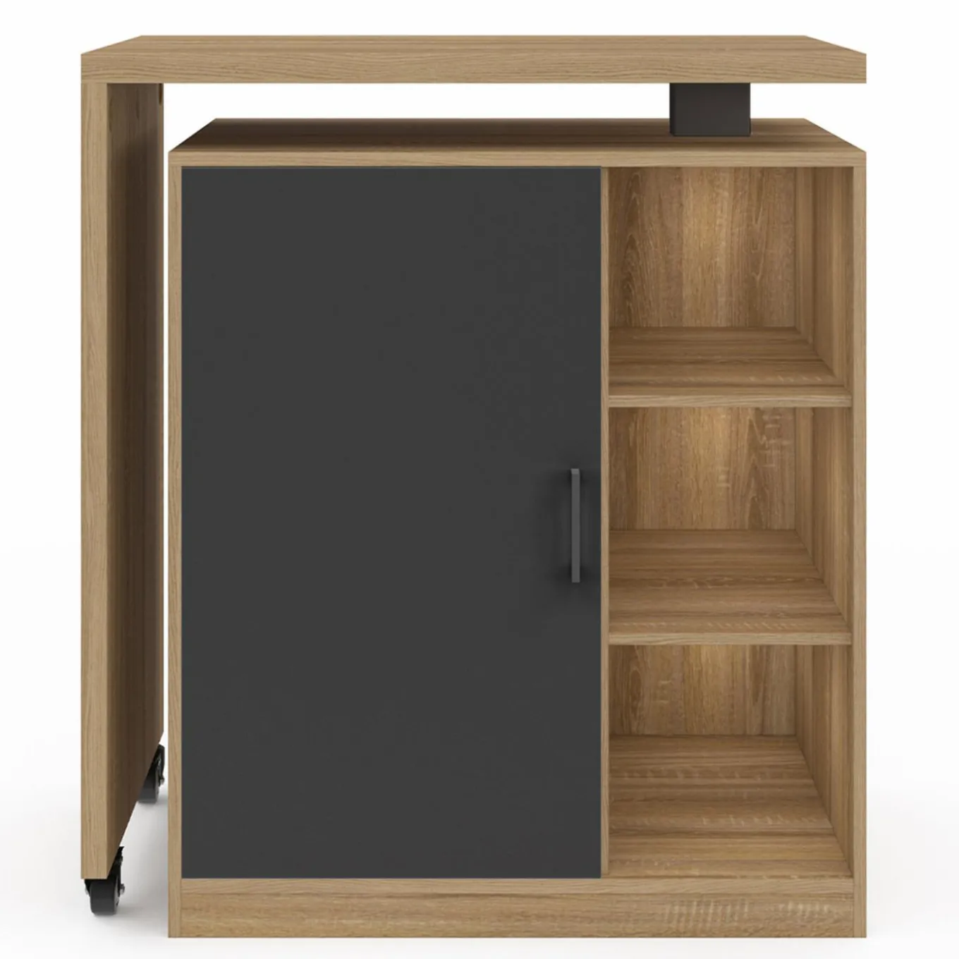 Ilot rotatif POLO meuble de bar pivotant 2 en 1 imitation hêtre porte noire