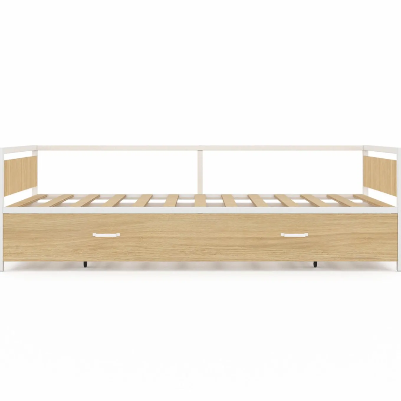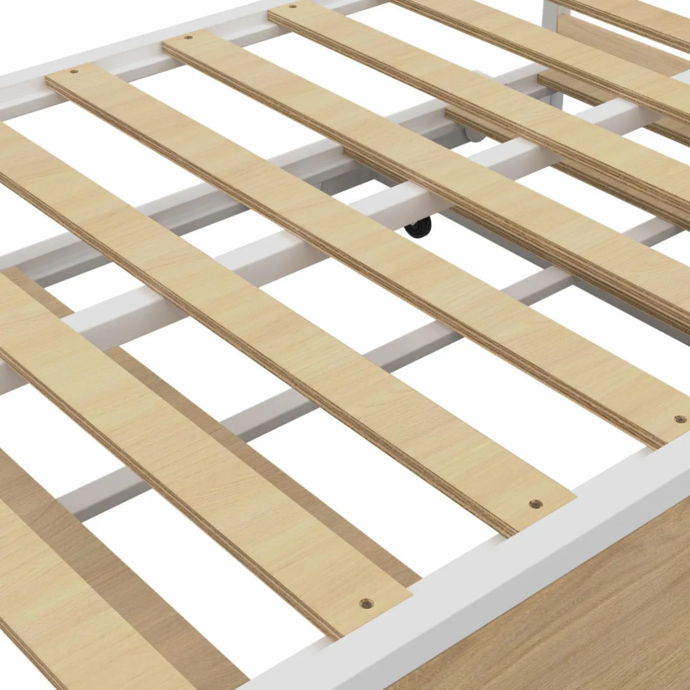 À la recherche d’une banquette convertible, à la fois esthétique et pratique ? Optez pour le lit gigogne DETROIT de 90 x 190 cm au coloris bois et blanc.