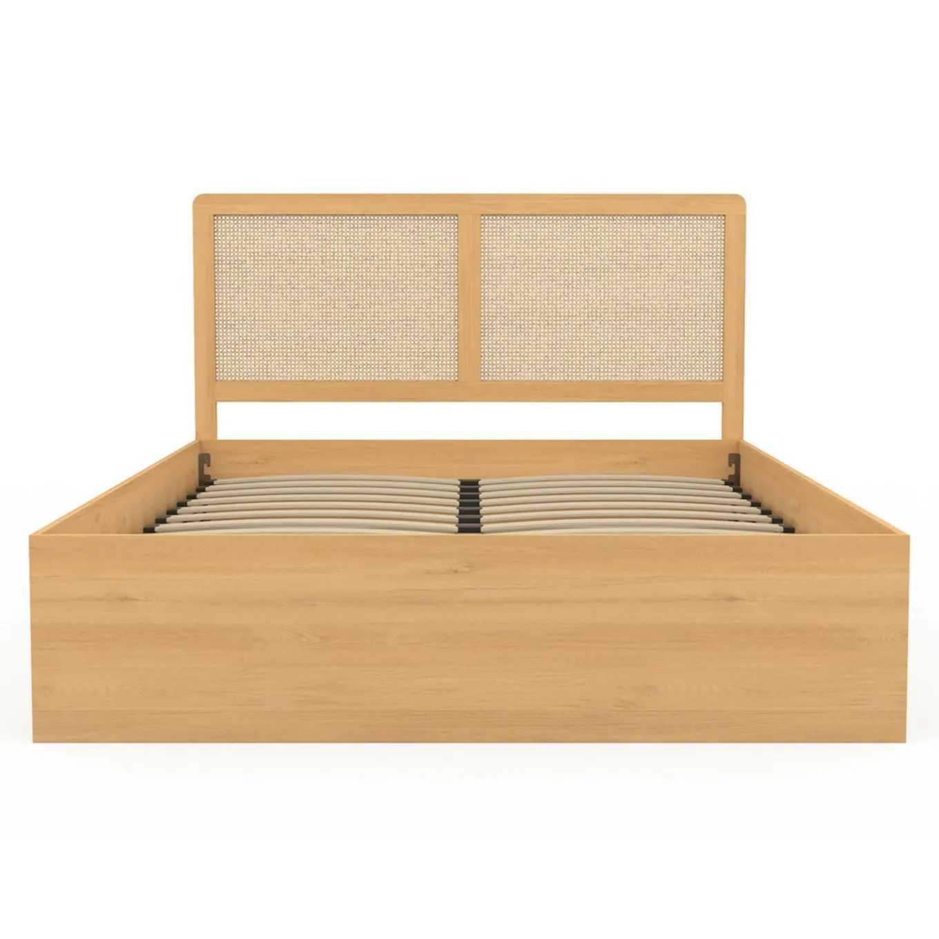 Lit coffre double EDHEN avec tête de lit cannage et sommier 140 x 190 cm coloris bois