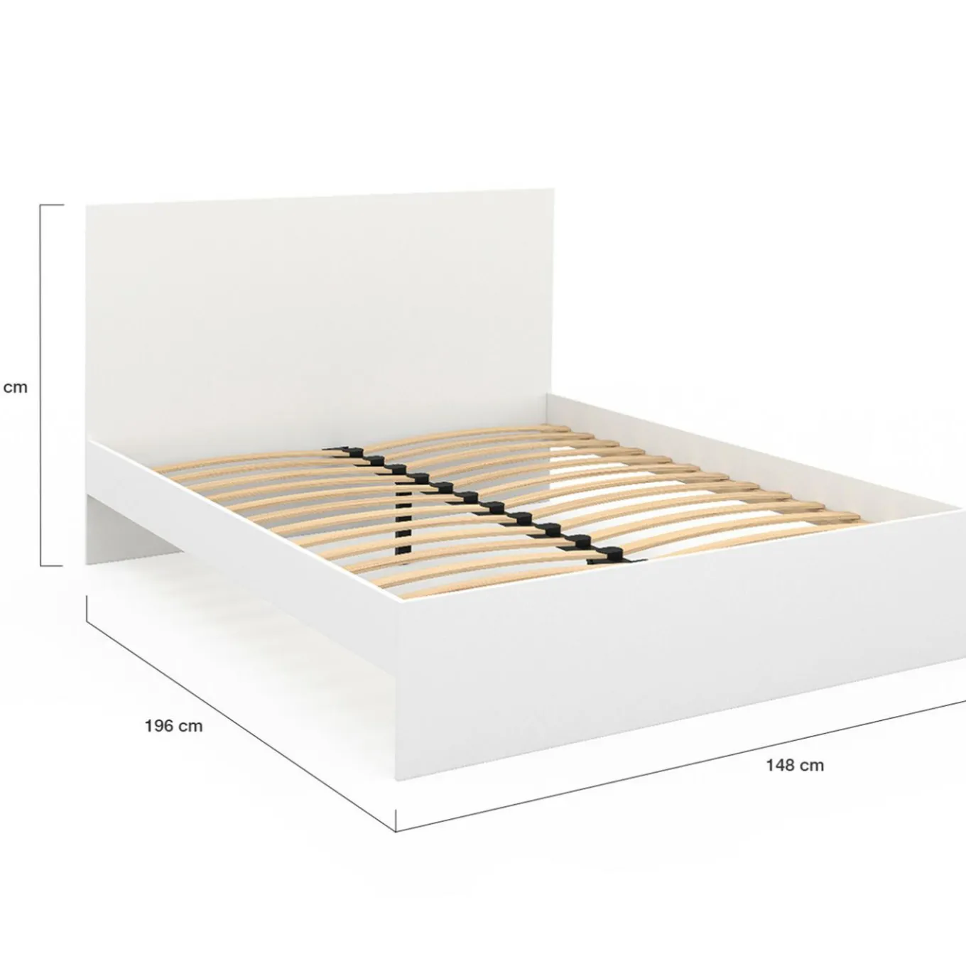 Descriptif du lit double avec tête de lit et sommier 140×190 cm bois blanc