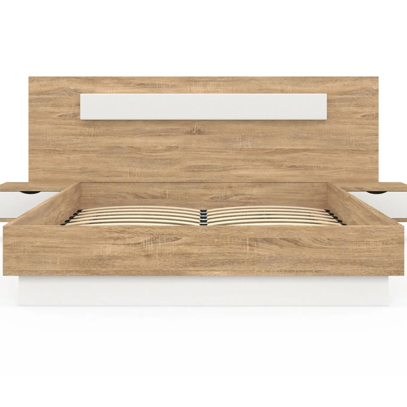 Alliez praticité et design grâce à ce lit double SANTA 160 x 200 cm avec chevets intégrés, au coloris bois et blanc.