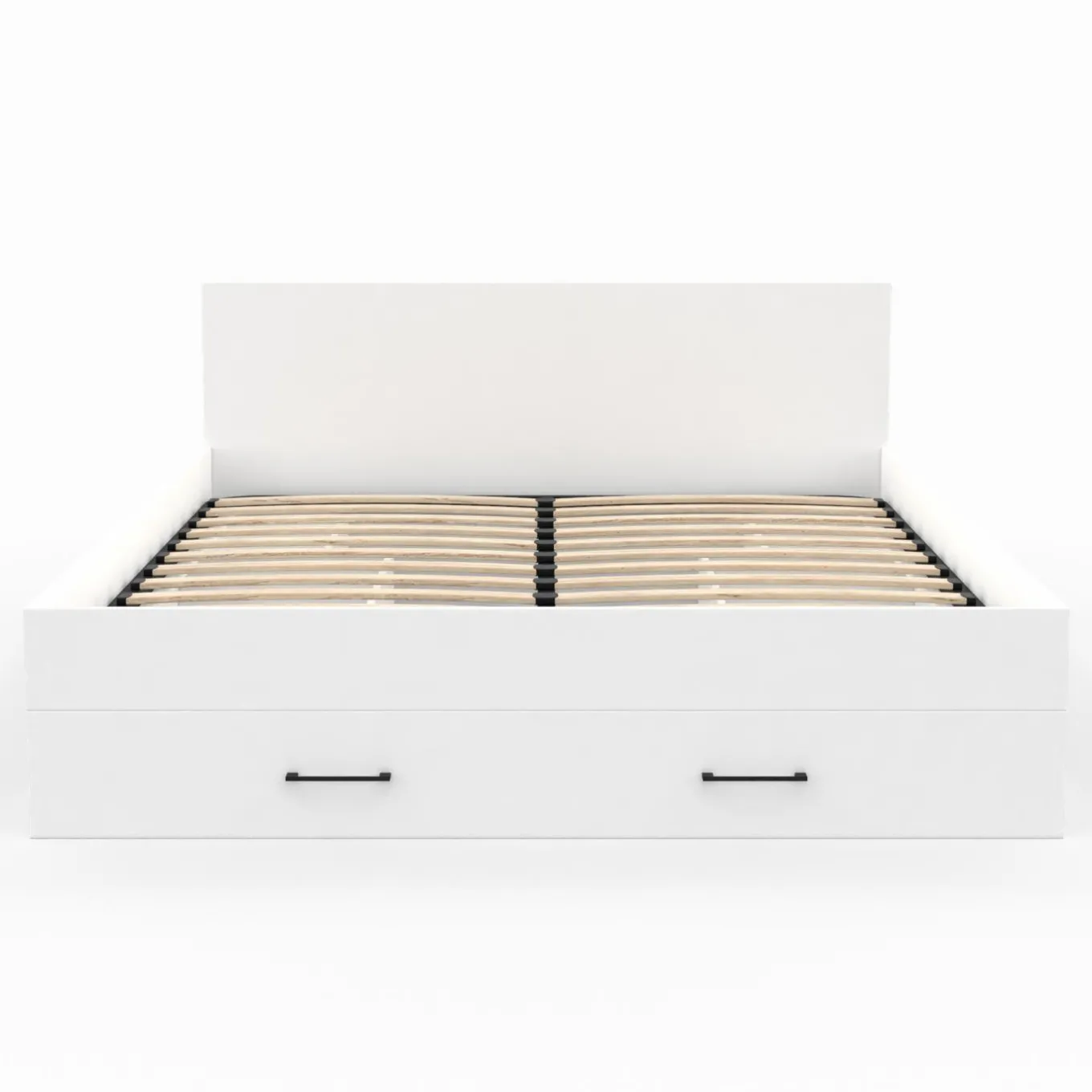 Lit double MINEA avec tiroirs + niches de rangement + tête de lit et sommier 140 x 190 cm blanc