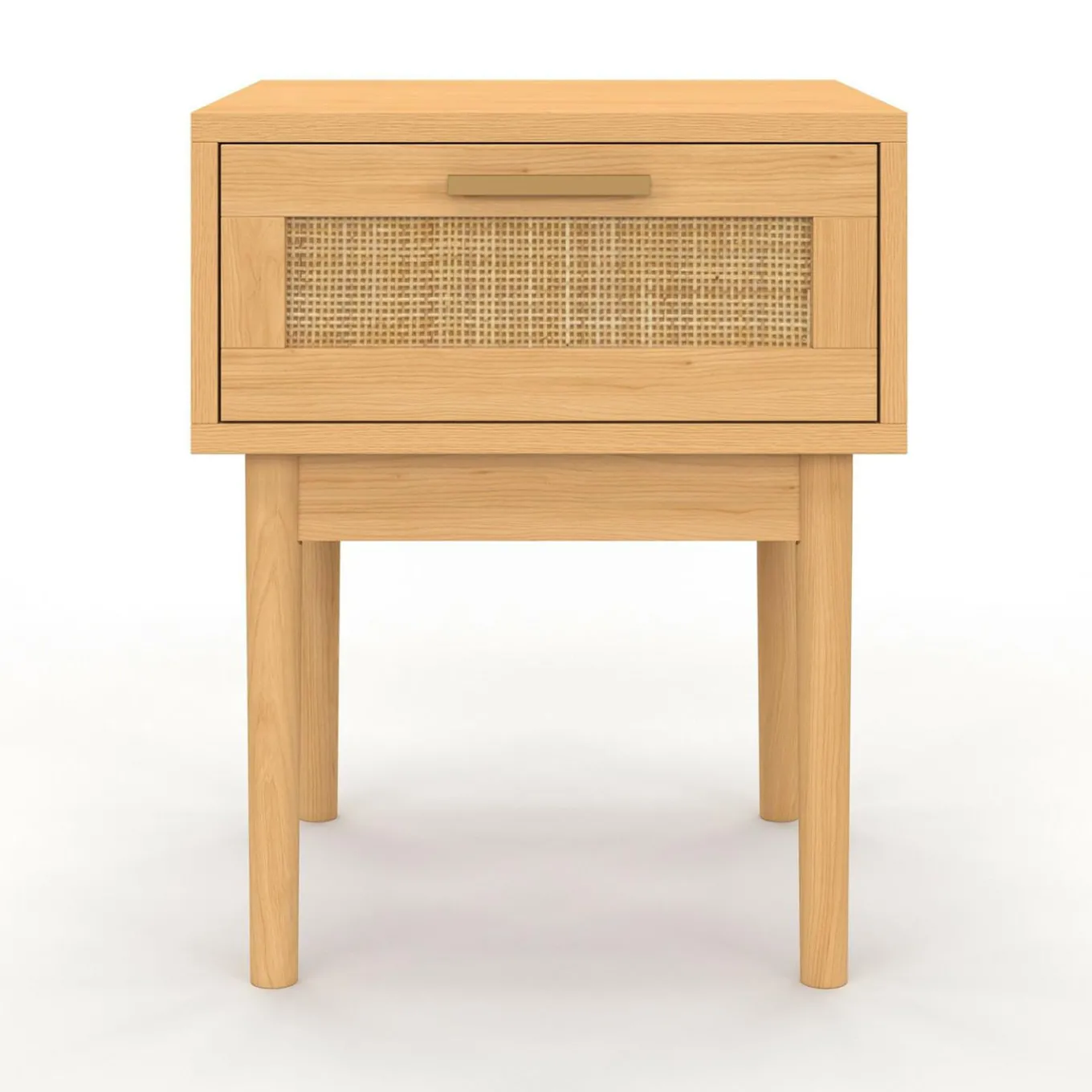Décorez votre chambre à coucher avec style grâce à ce lot de deux chevets ROBERT en cannage ! Avec leur couleur naturelle, mélange de bois clair et d’effet cannage, ce lot de tables de chevet apportera une touche bohème tendance à votre pièce ! Chaque meuble est muni d’un tiroir en cannage pour y ranger tous vos effets personnels. Le design épuré du chevet crée une atmosphère légère et décontractée.