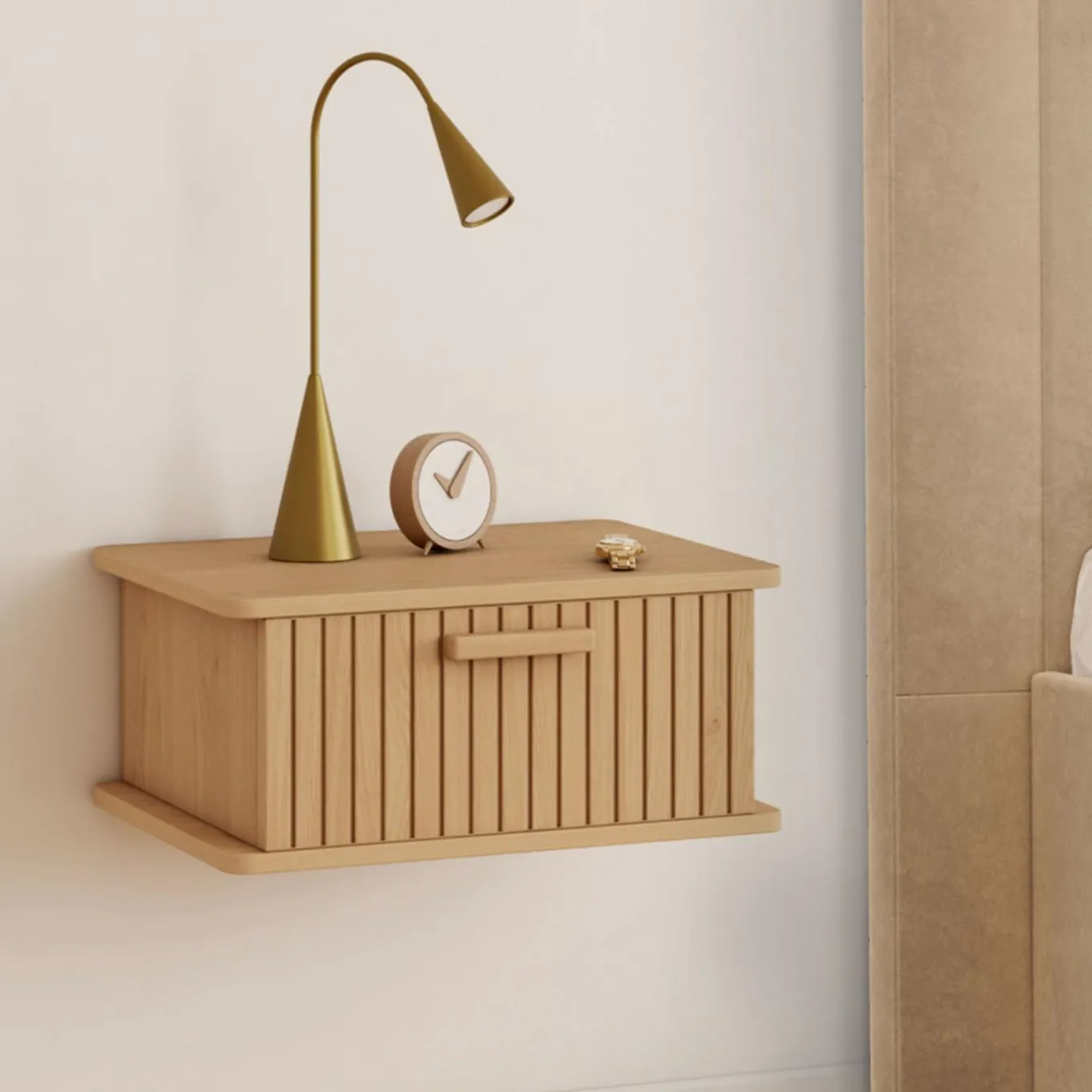 Lot de 2 tables de chevet murales JULIETTE 1 tiroir étagère suspendue lattes tasseau bois
