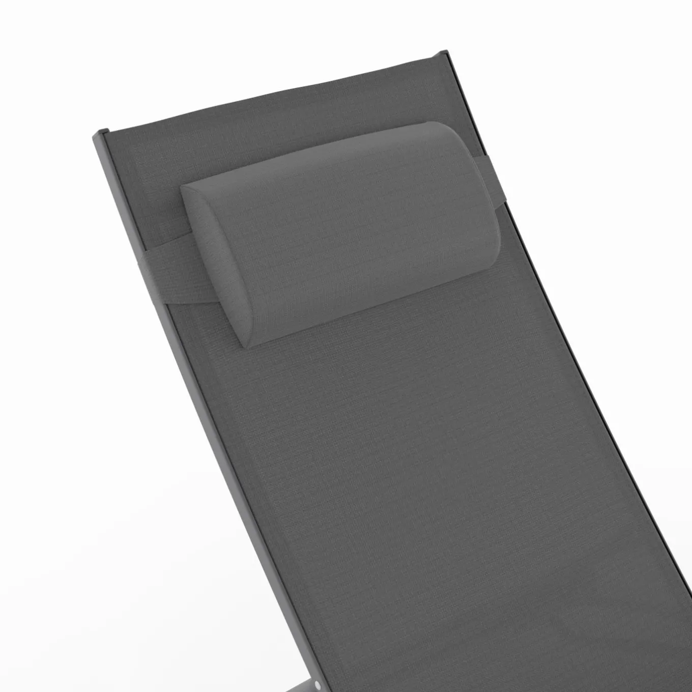 Fabriqués avec une structure en acier gris anthracite, ces transats de jardin sont élégants. Leur assise en textilène gris, matière spécialement conçue pour l’extérieur, est à la fois souple et résistante aux UV. Leur coussin appuie-tête, incus ajoute un vrai plus à votre confort.