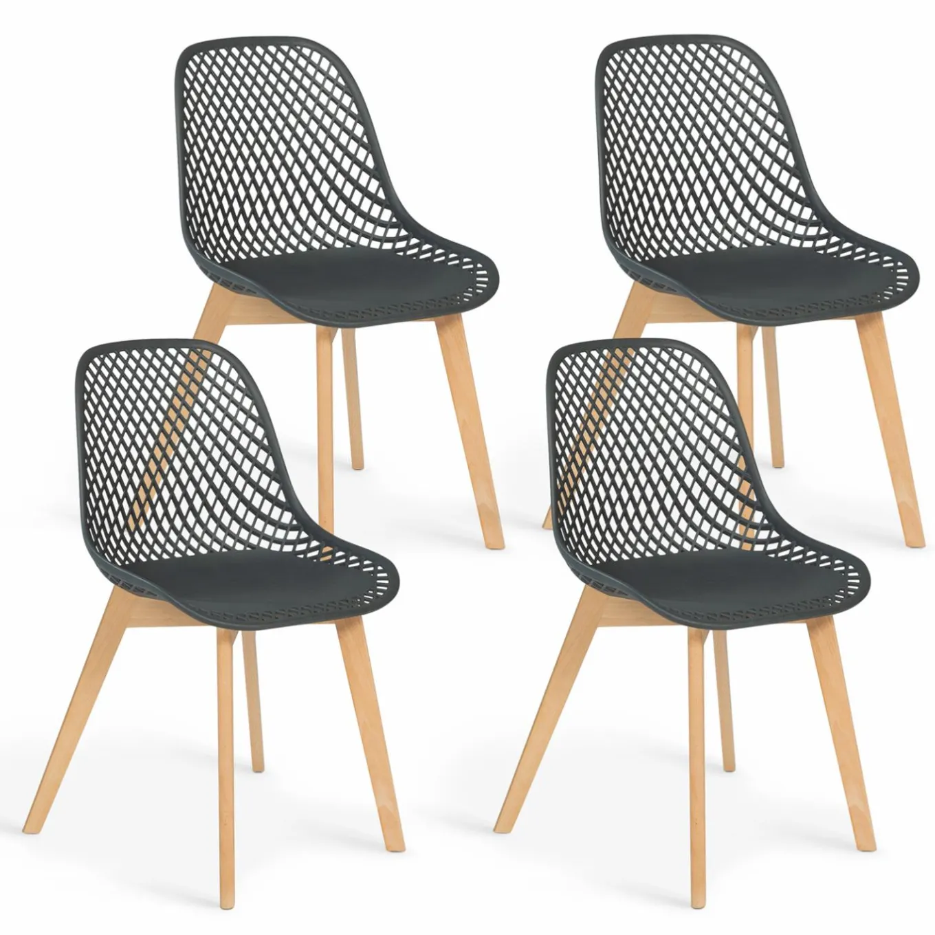 IDMarket Lot de 4 chaises ajourées grises design* Collection Scandinave|Salle À Manger Complète