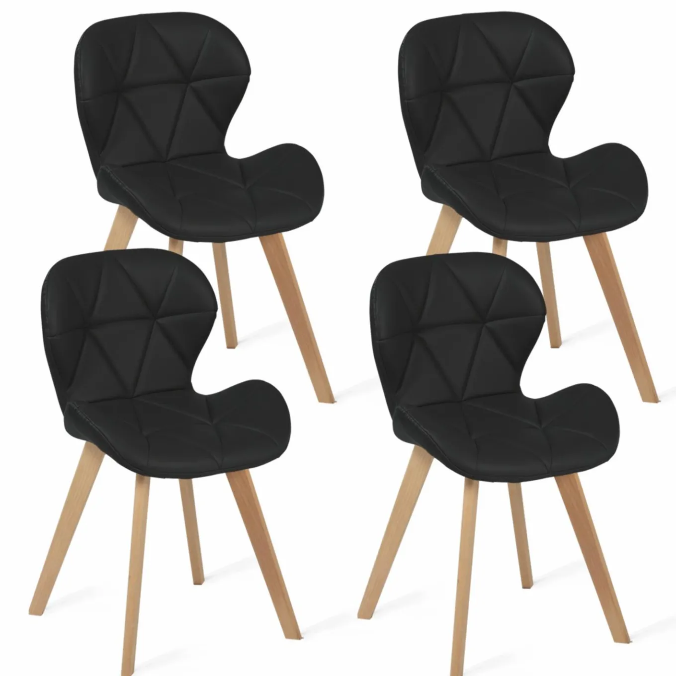 Lot de 4 chaises ROBINE en PU noires pour salle à manger