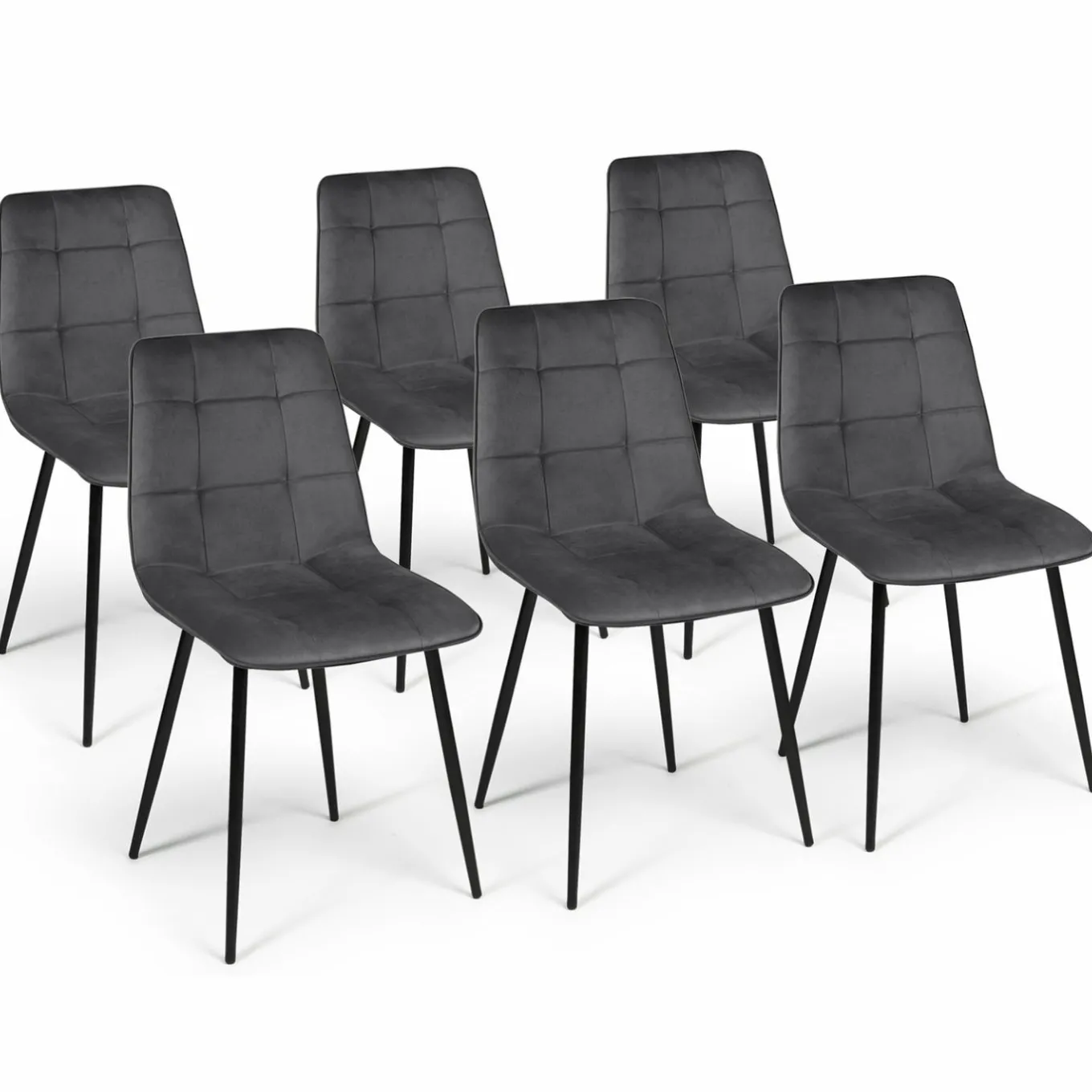 Lot de 6 chaises MILA en velours gris foncé pour salle à manger