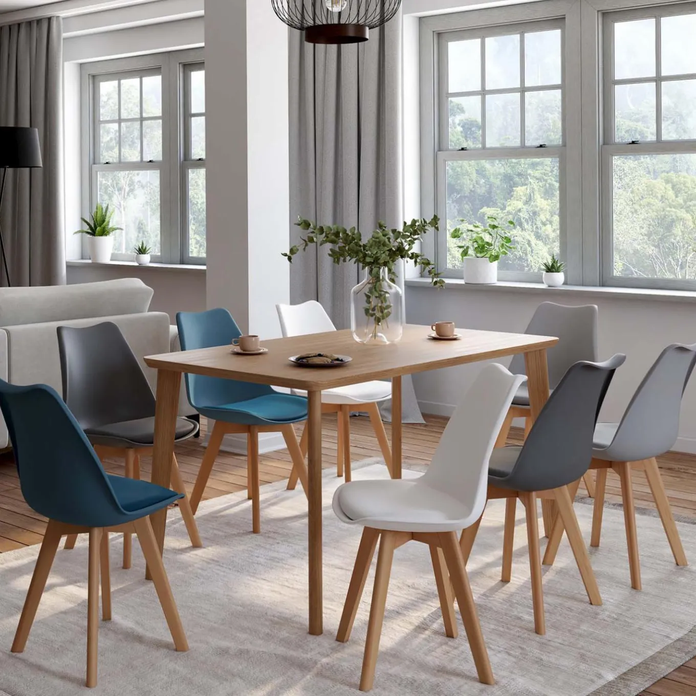 Découvrez sans attendre nos chaises scandinaves gris foncé, gris clair, blanc et bleu x8.