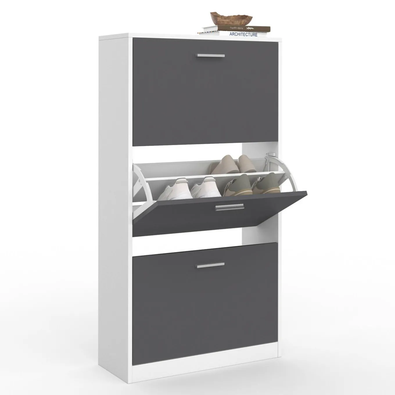 Meuble à chaussures 18 paires KLARK blanc 3 portes grises