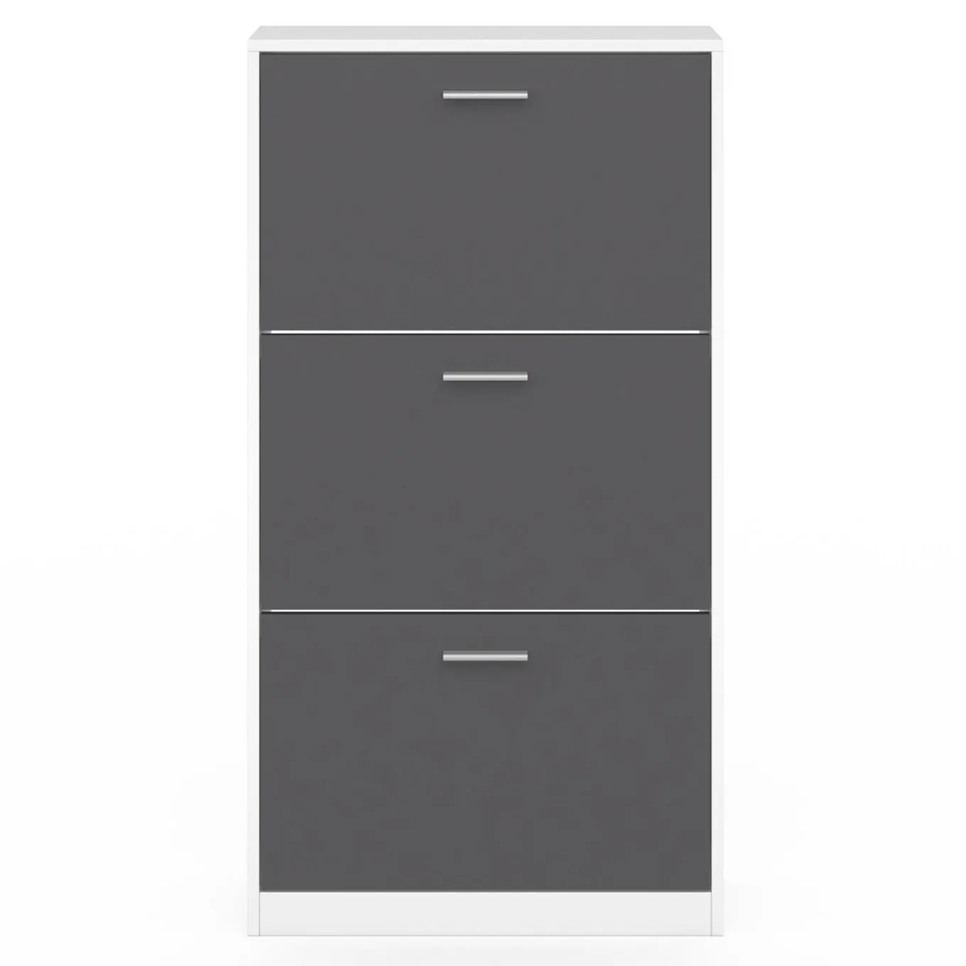 Descriptif du meuble à chaussures blanc 3 portes grises
