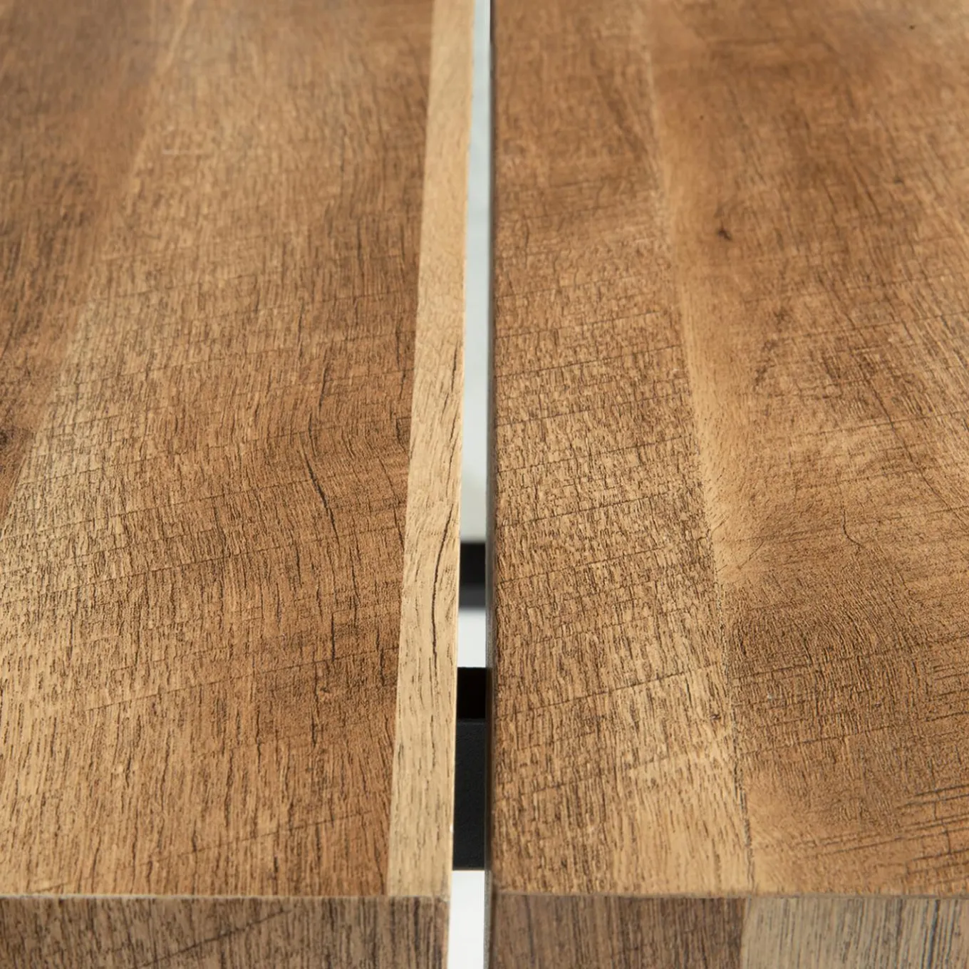 Directement inspiré du style industriel des ateliers, ce beau meuble console métal et bois est composé d’un plateau en MDF de 3,8 cm fixé sur une structure en métal noir. Son magnifique plateau, en 2 parties, est espacé d’un interstice à la manière d’une palette : la petite touche d’originalité qui fait toute la différence !