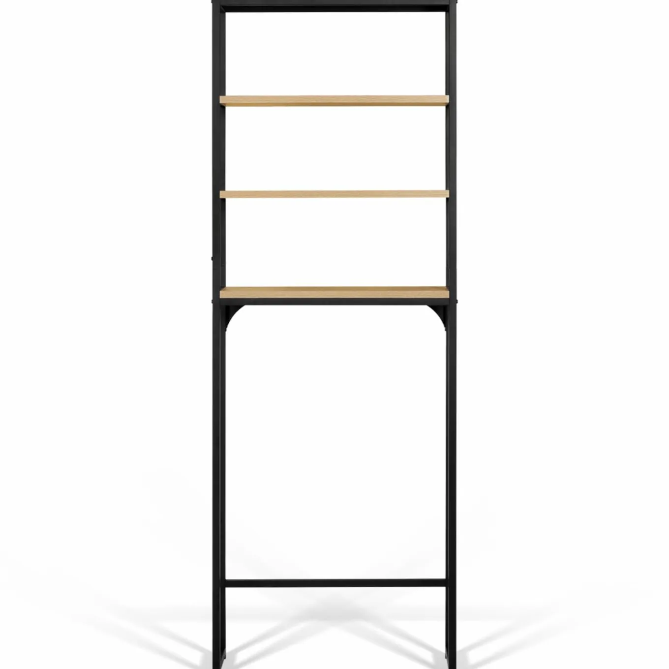 Idéale pour les petits espaces, cette étagère en bois et structure en métal noir va parfaitement s’intégrer dans des WC, une salle de bain ou une buanderie.