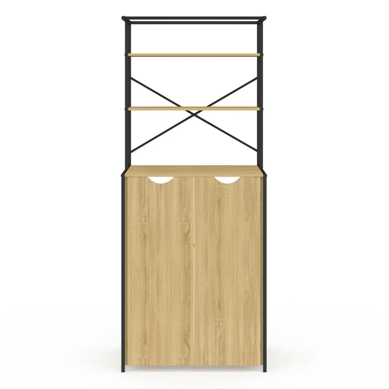 La structure du meuble en panneaux de particules mélaminés et en métal lui apporte stabilité et solidité. Pour une touche déco et fonctionnelle, vous pouvez compter sur le design épuré et les couleurs naturelles de ce meuble avec étagères.