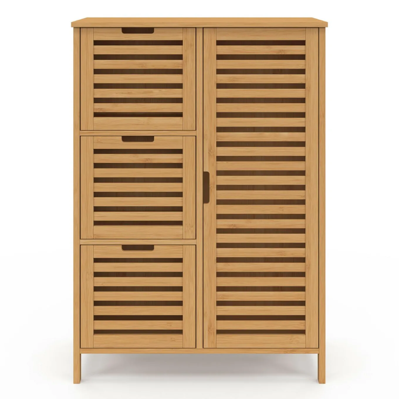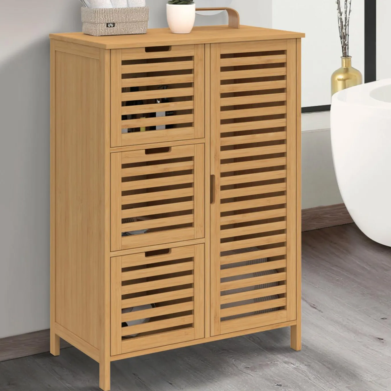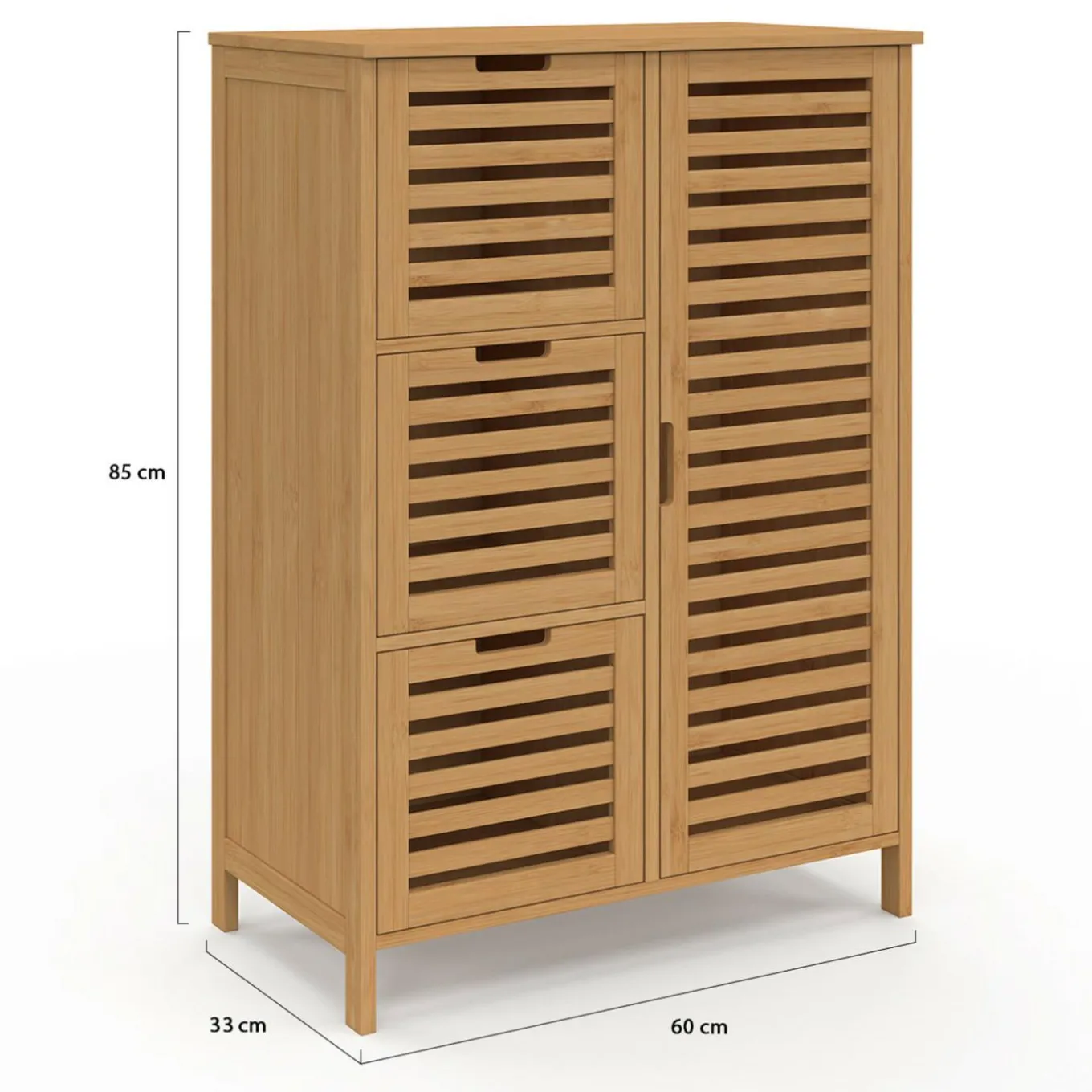 Meuble de rangement salle de bain bambou BEA 3 tiroirs avec placard