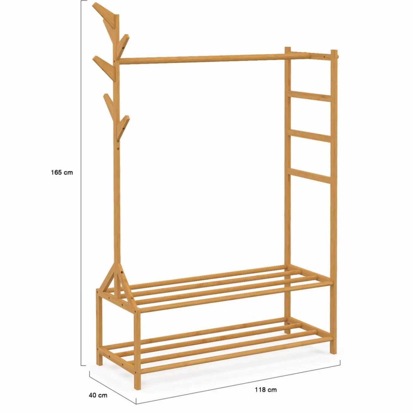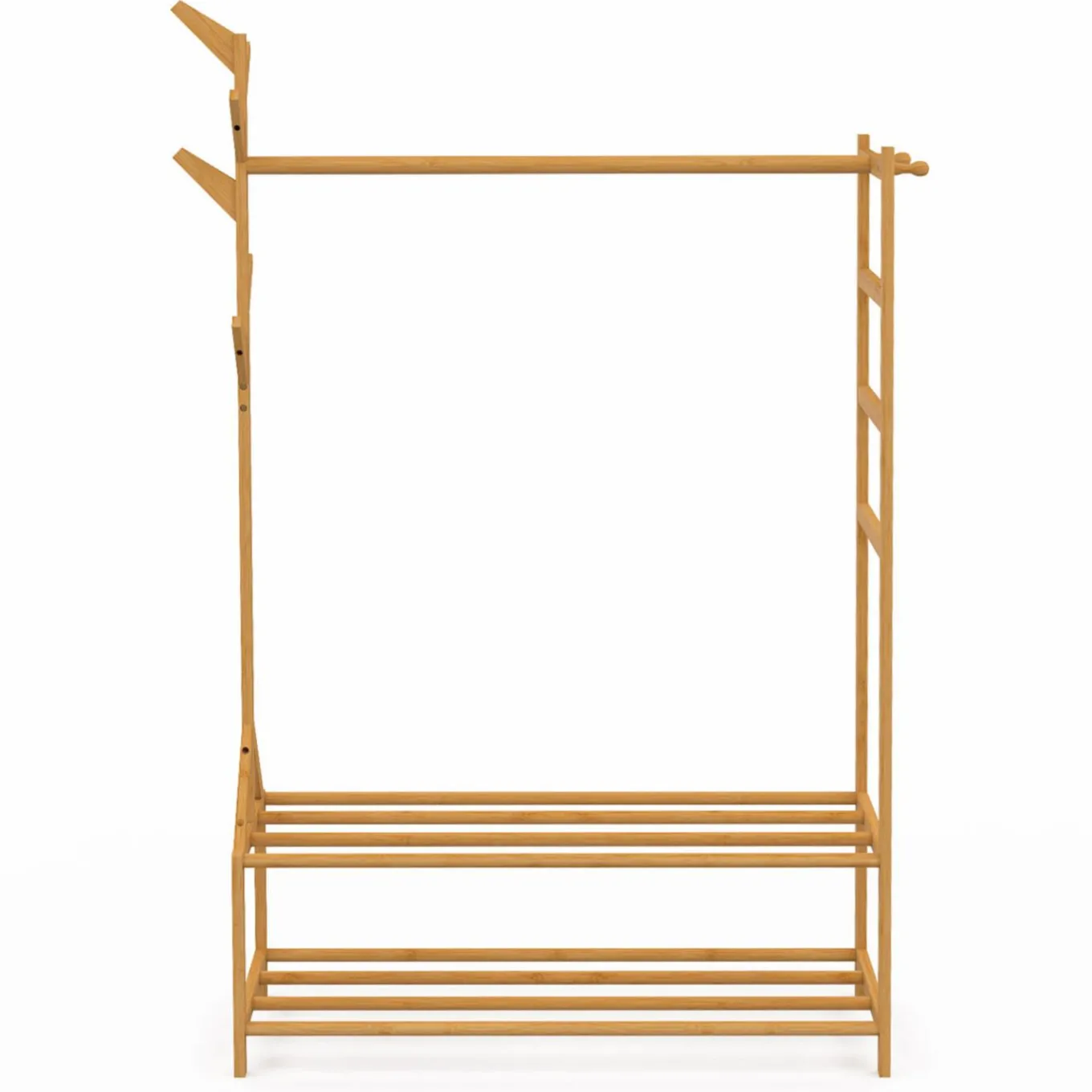 Portant vêtements bambou RITA avec porte-manteaux et étagères