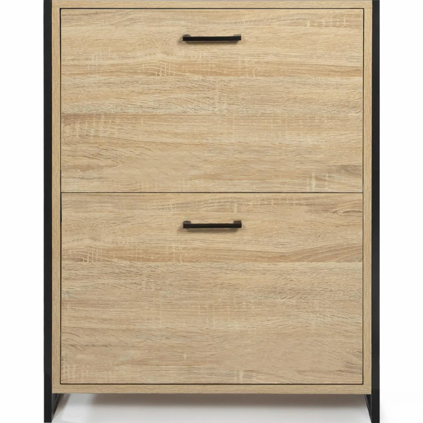 Son vrai avantage, c’est bien sûr sa capacité : dans chacun des 2 espaces de rangement, vous pouvez stocker 6 paires de chaussures à l’abri de la poussière de manière discrète, soit 12 au total. Stable et fonctionnelle, cette armoire à chaussures au look industriel arbore de jolies poignées intégrées et des finitions soignées.