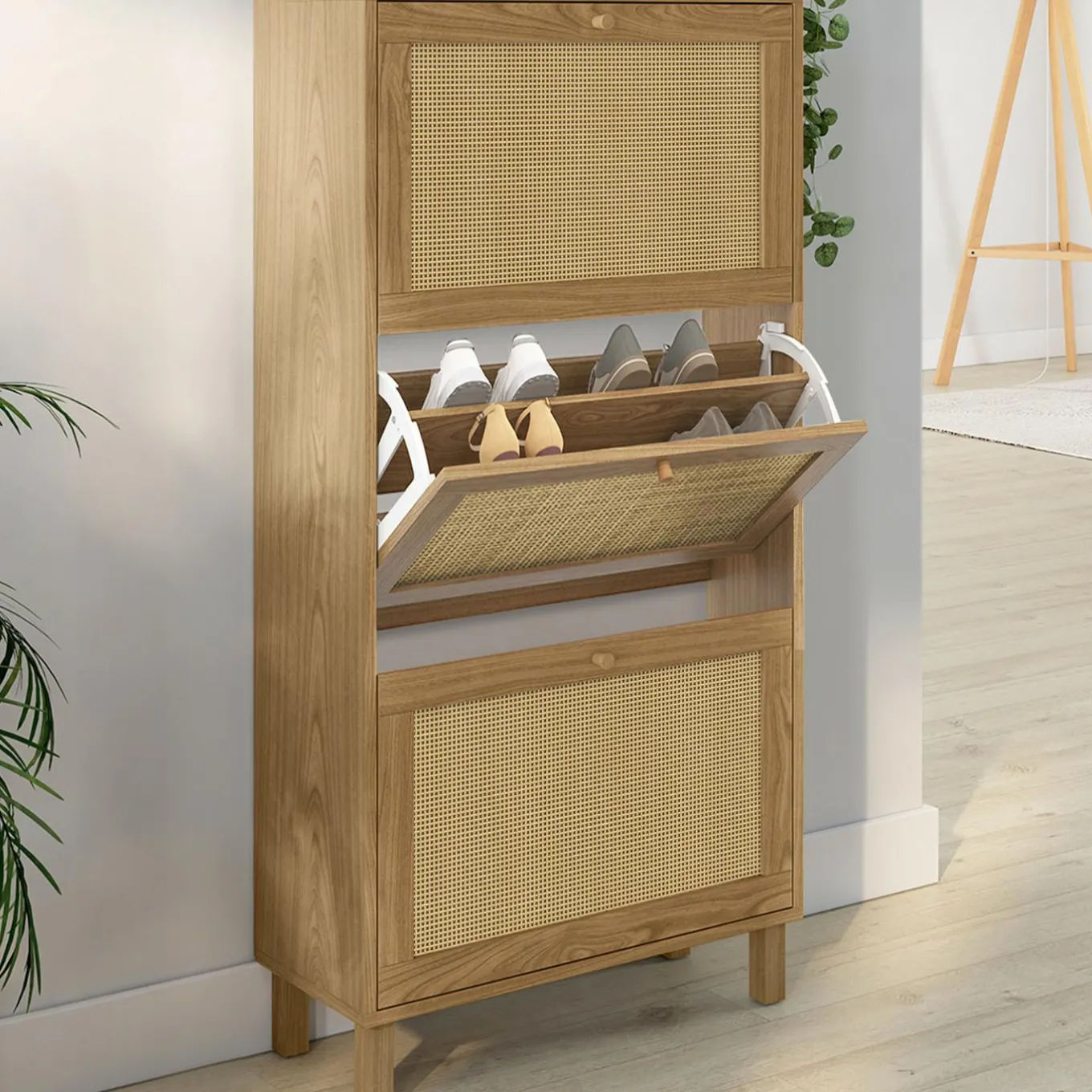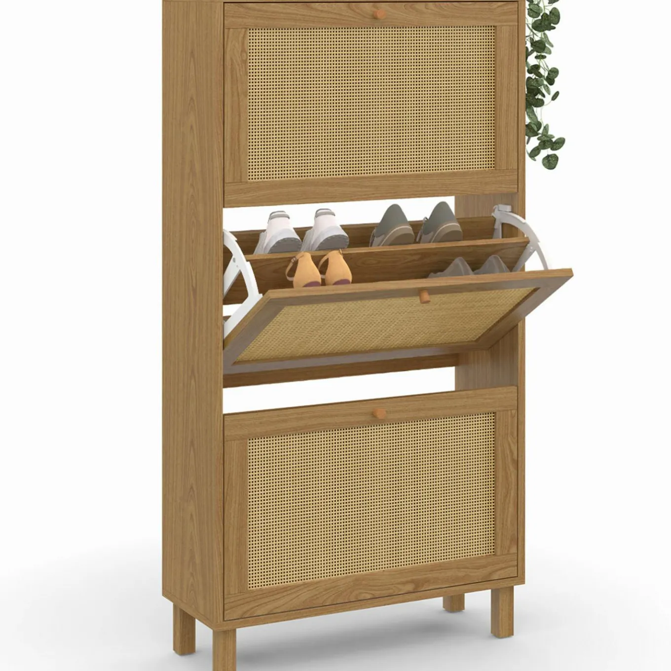 Meuble à chaussures 18 paires HANAE 3 portes effet naturel cannage