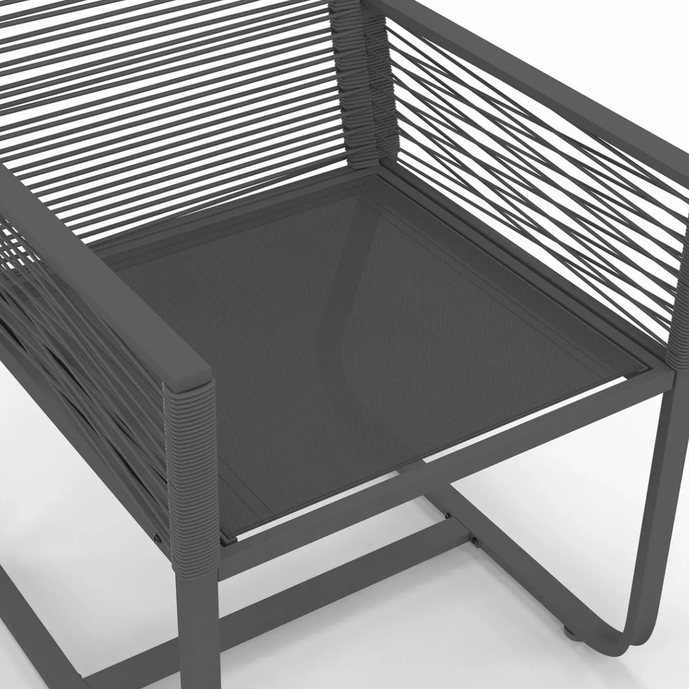 Salon de jardin ODESSA table 150 cm et 6 fauteuils cordage gris anthracite
