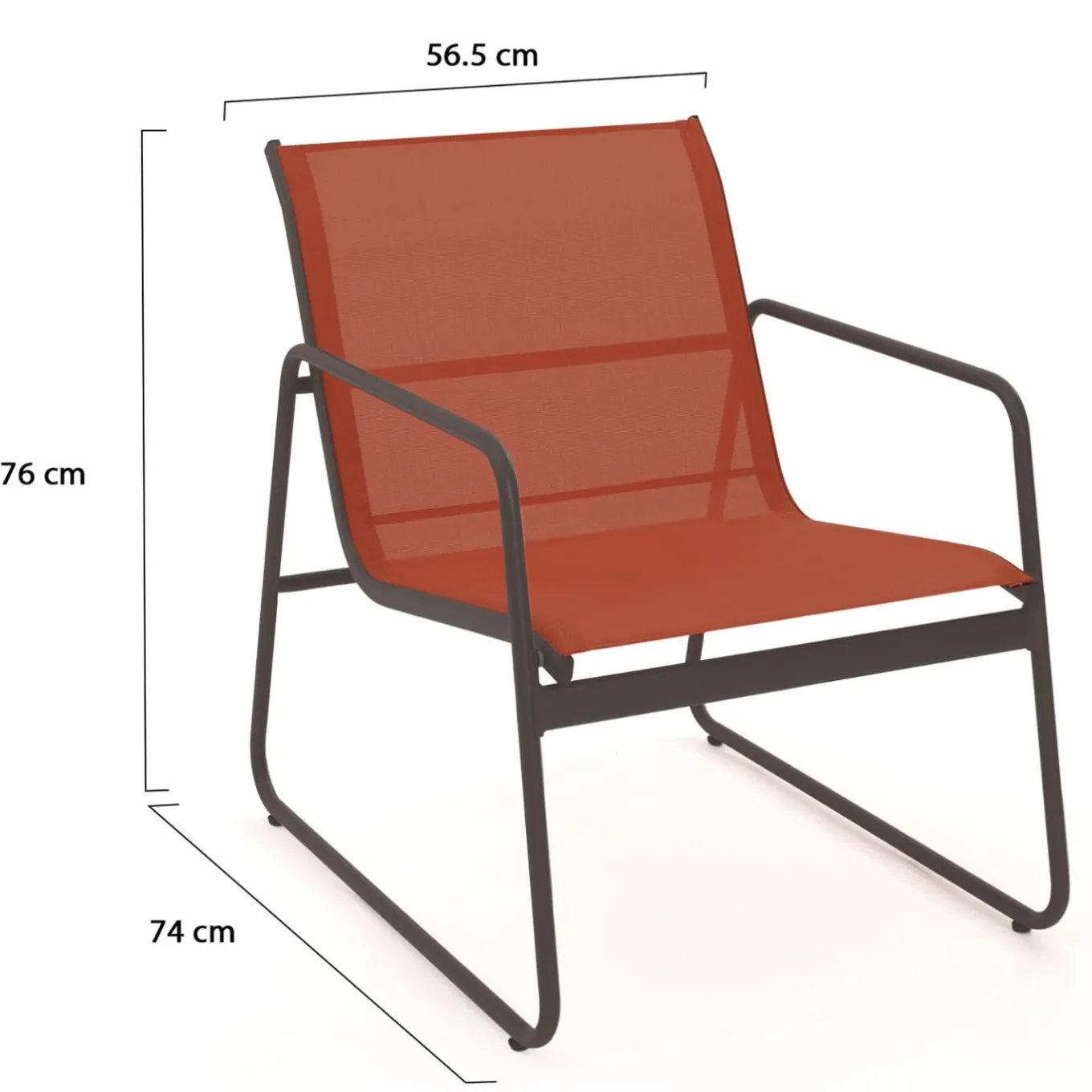 Descriptif du salon de jardin bas en acier et textilène terracotta