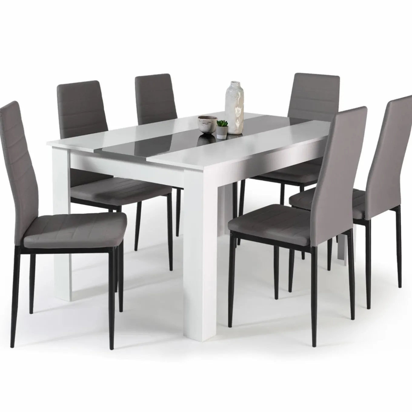 Vous cherchez un ensemble table et chaises 6 places aussi élégant que pratique ? Ne cherchez plus ! Ce lot table à manger blanche et grise 140 cm et 6 chaises grises est la solution parfaite pour meubler avec style.
