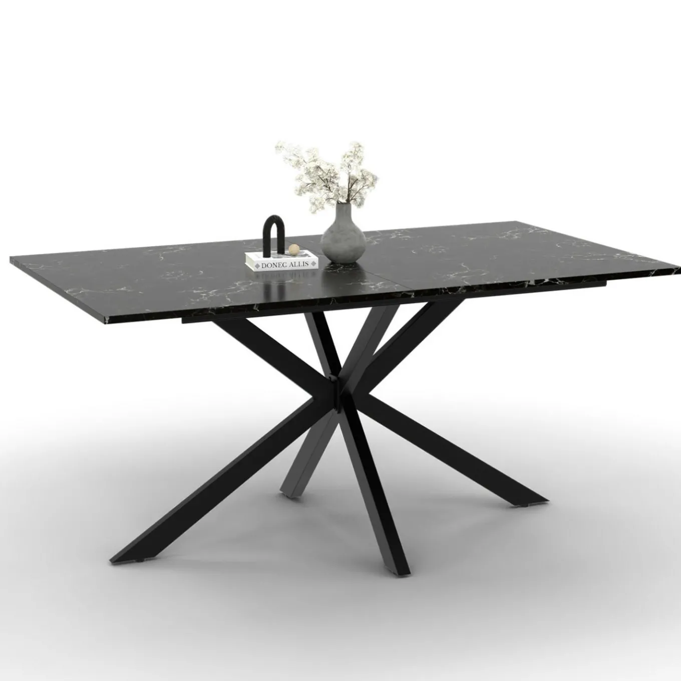 Table à manger rectangle ALIX 8 personnes pied araignée noir et plateau effet marbre noir ALASKA 160 cm