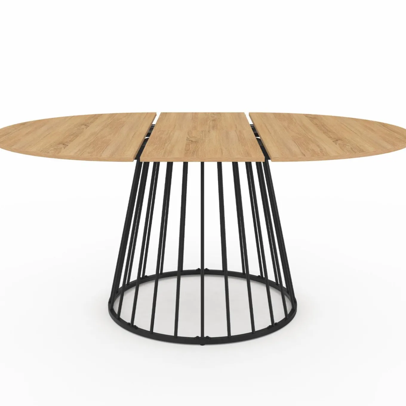 Table à manger extensible ronde YUNA 4-8 pers plateau bois et pied filaire en métal 110 – 150 cm