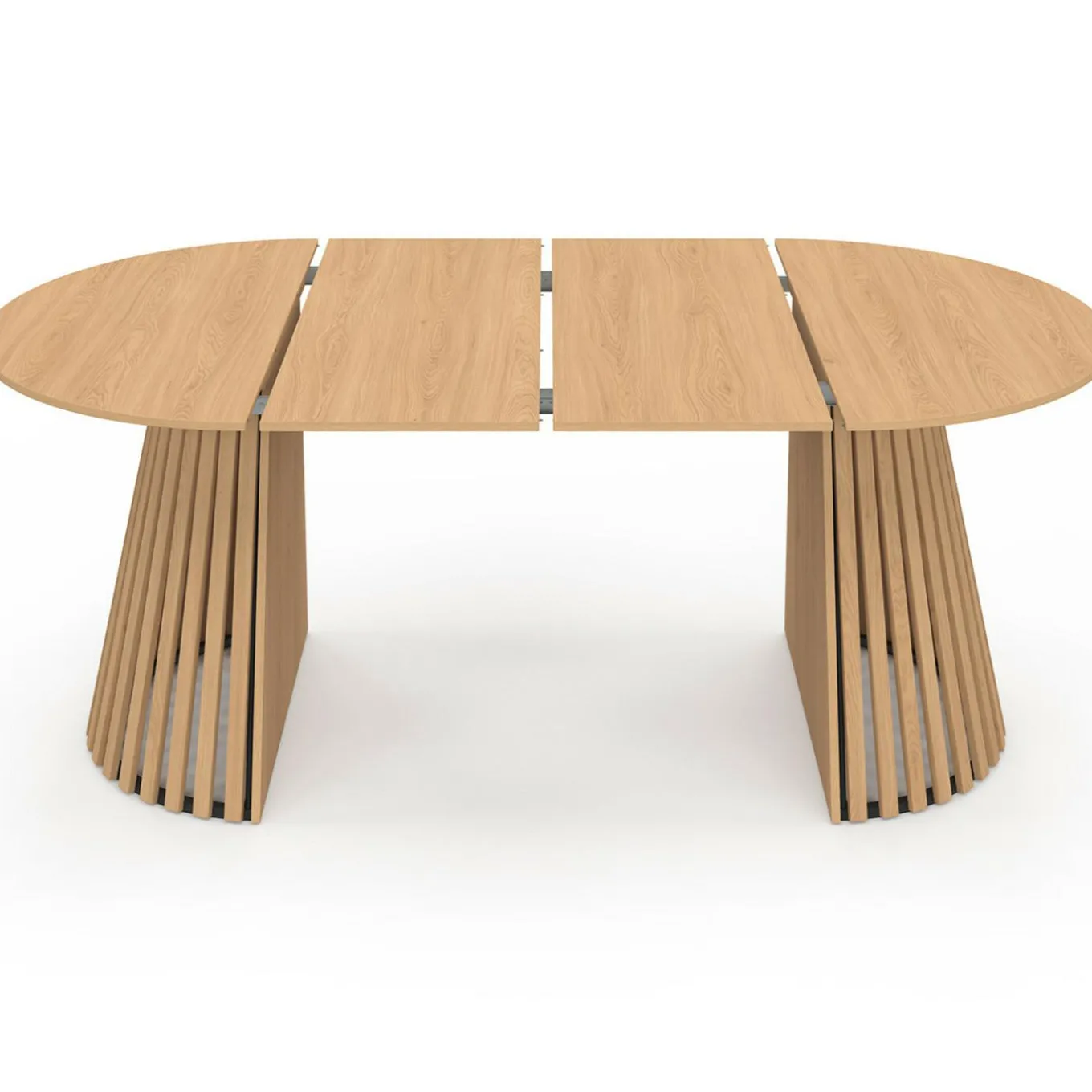 Découvrez la table à manger extensible CARMEN ronde plateau bois et son piétement en lattes au design ultra tendance ! Cette table s’intégrera parfaitement à votre salle à manger ou votre cuisine tout en apportant une touche moderne et sophistiquée à votre intérieur. Son plateau circulaire aspect bois est idéal pour accueillir jusqu’à 10 convives !