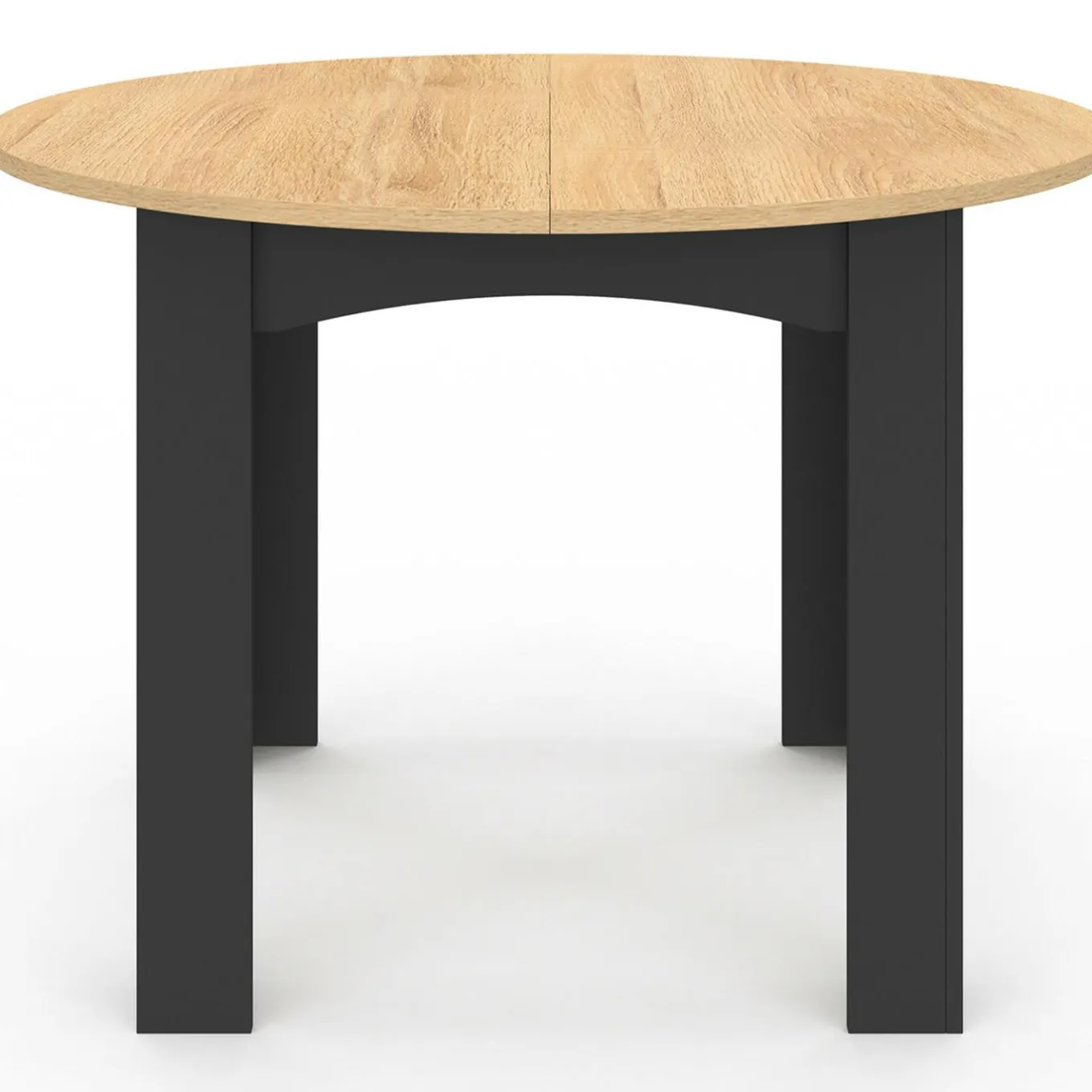 IDMarket Table à manger ronde 110 cm 4-6 personnes noire plateau façon hêtre* Collection Design|Collection Contemporaine