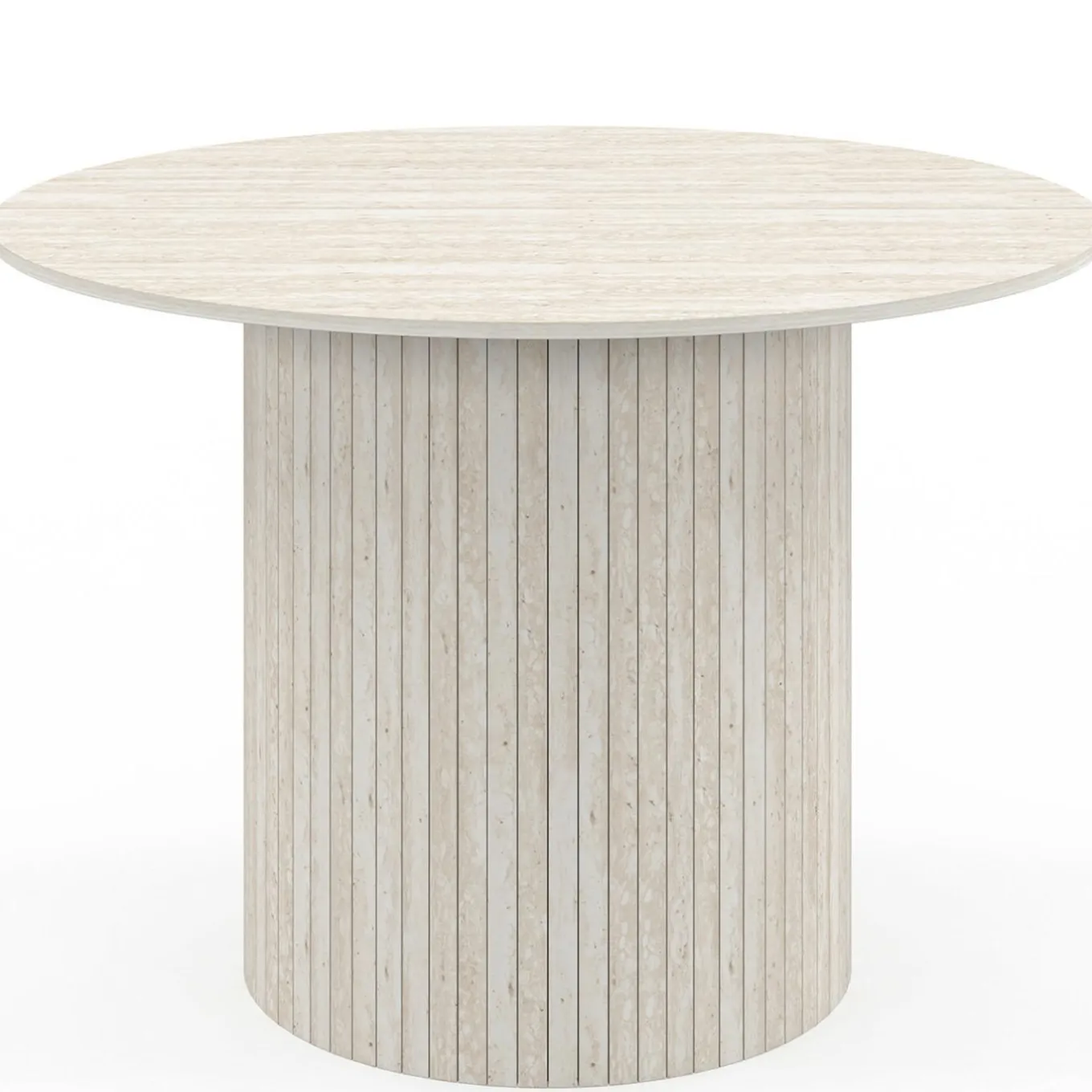 Table à manger ronde JULIETTE 6 personnes pied central effet lattes façon travertin 110 cm