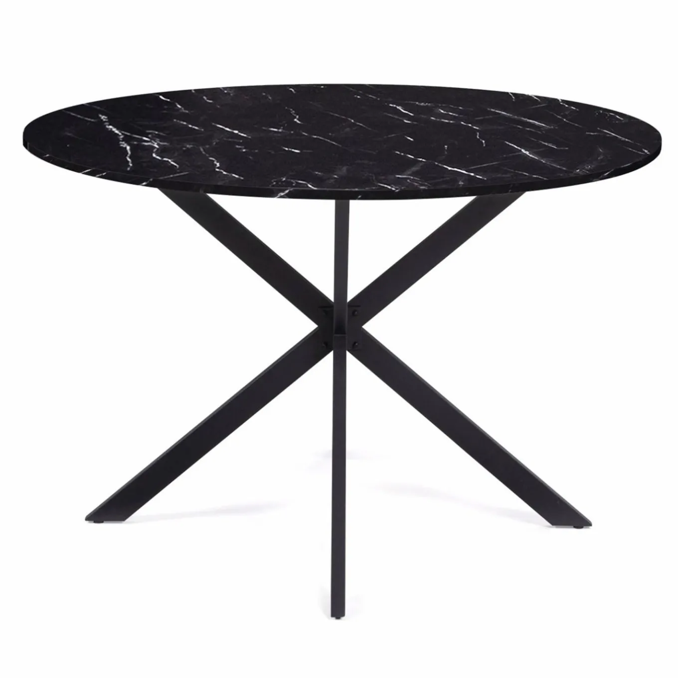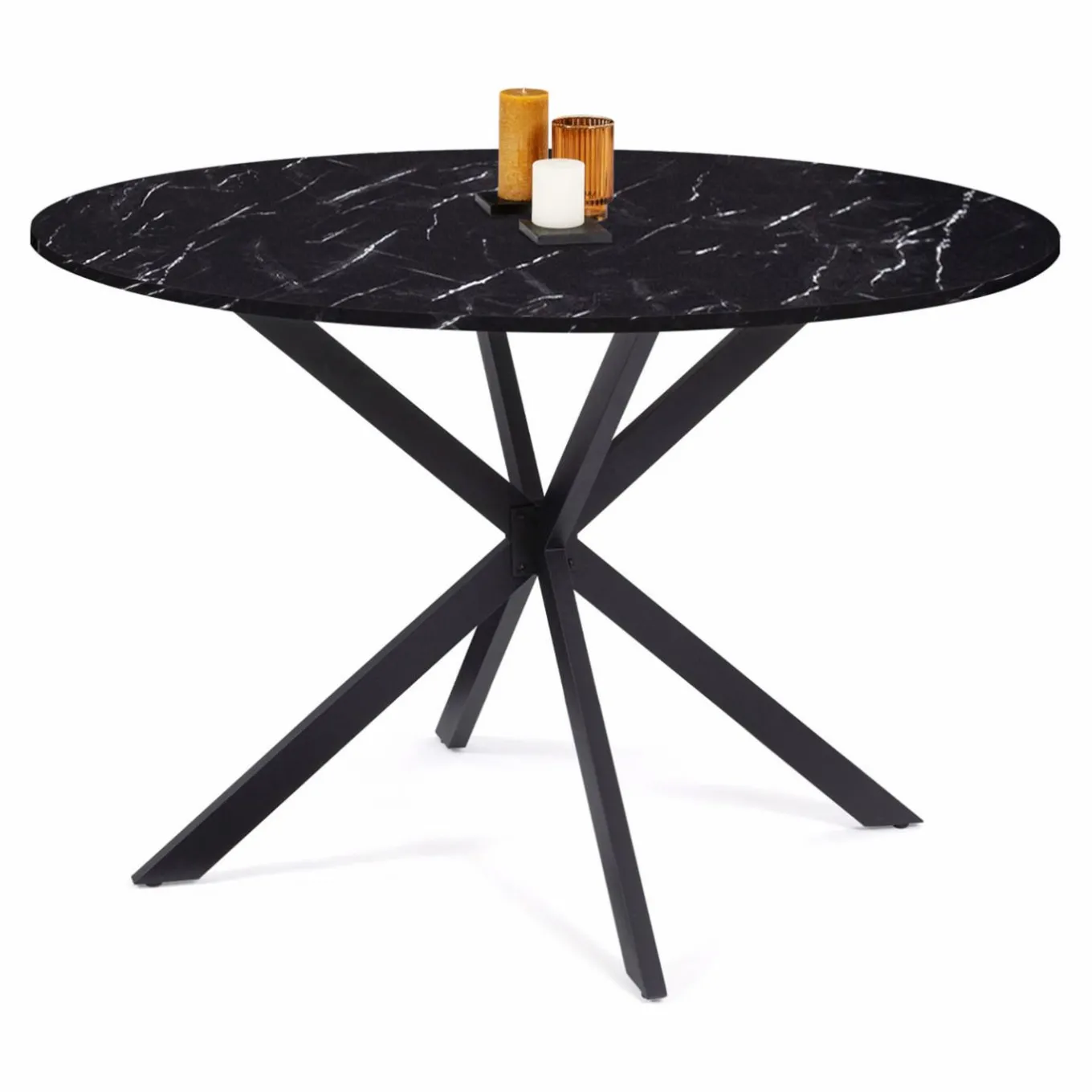 Table à manger ronde ALIX 6 personnes pied araignée noir et plateau effet marbre noir ALASKA 110 cm