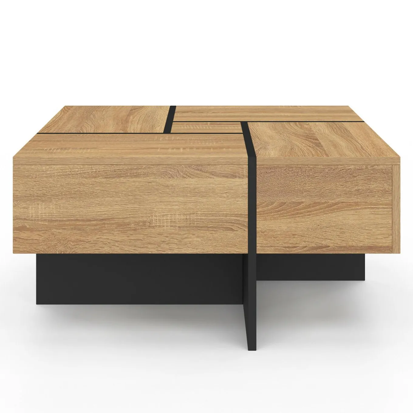 IDMarket Table basse carrée tiroirs bois noir* Collection Moderne|Salon Complet