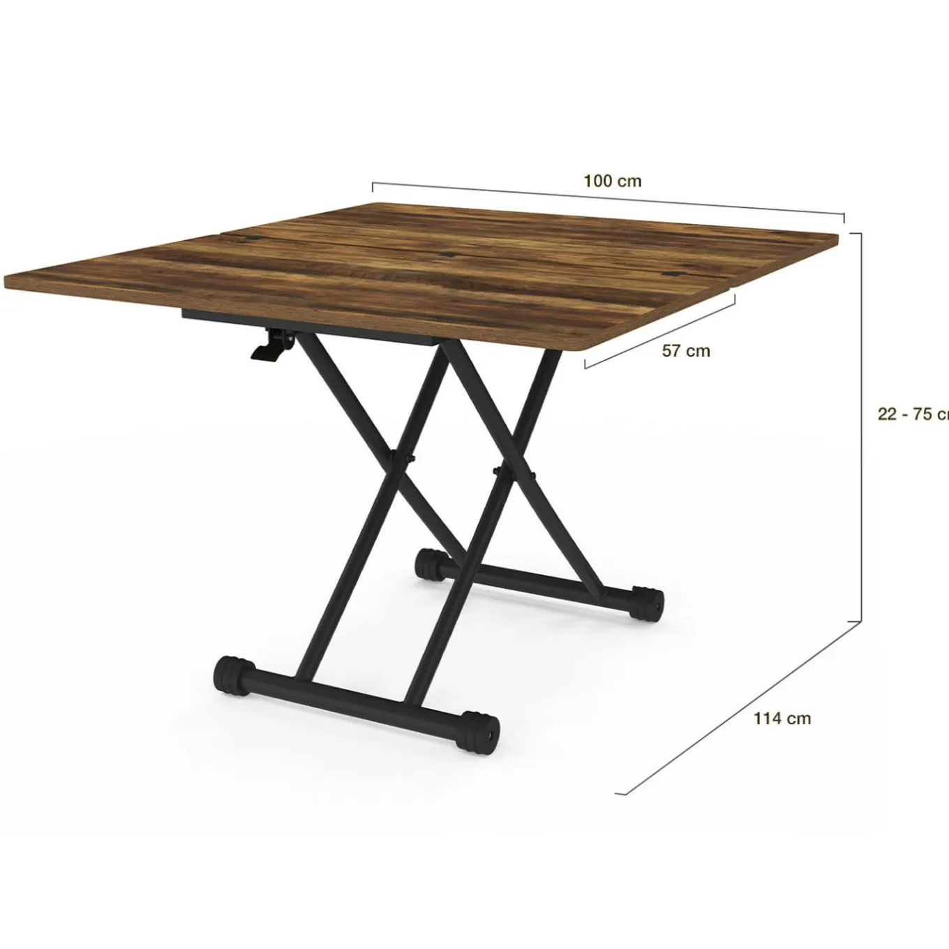 - Dimensions de la table dépliée : Longueur 114 cm x largeur 100 cm x Hauteur 22 / 75 cm