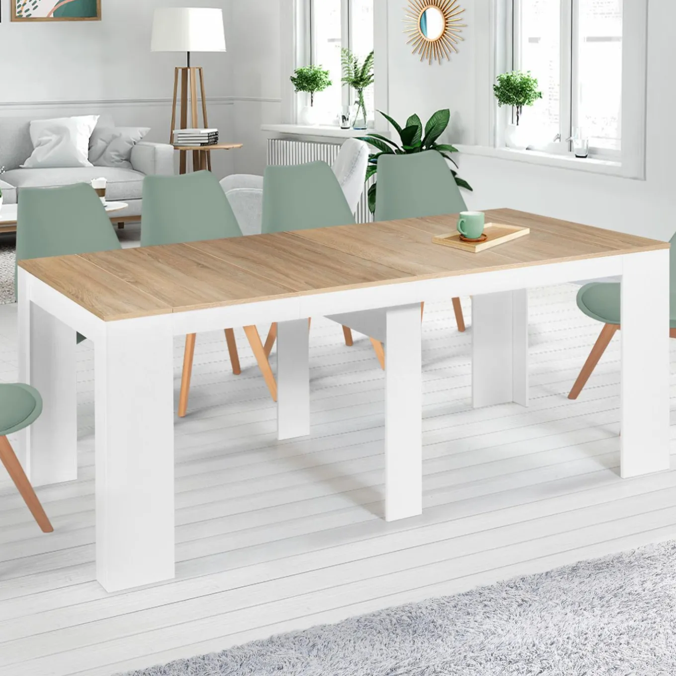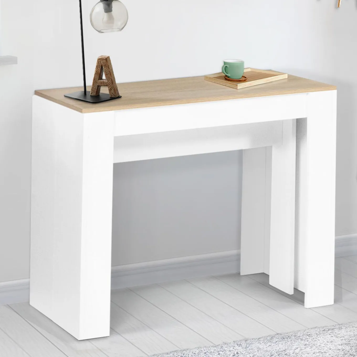 Laissez-vous tenter par la table console extensible 10 personnes bois façon hêtre et blanc ORLANDO !