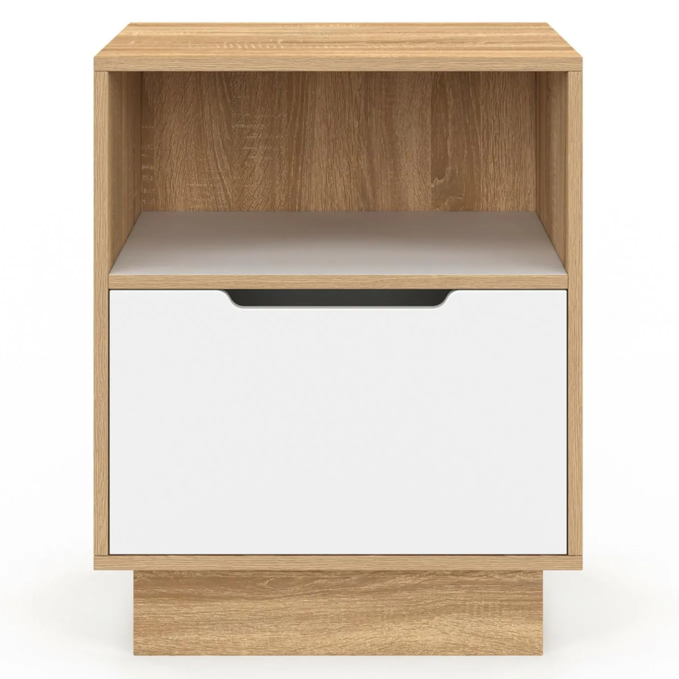 Sa couleur blanche classique et intemporelle associée à son coloris façon hêtre chaleureux permet à cette table de chevet de s’accorder à n’importe quelle décoration intérieure, pour un look sobre et élégant.