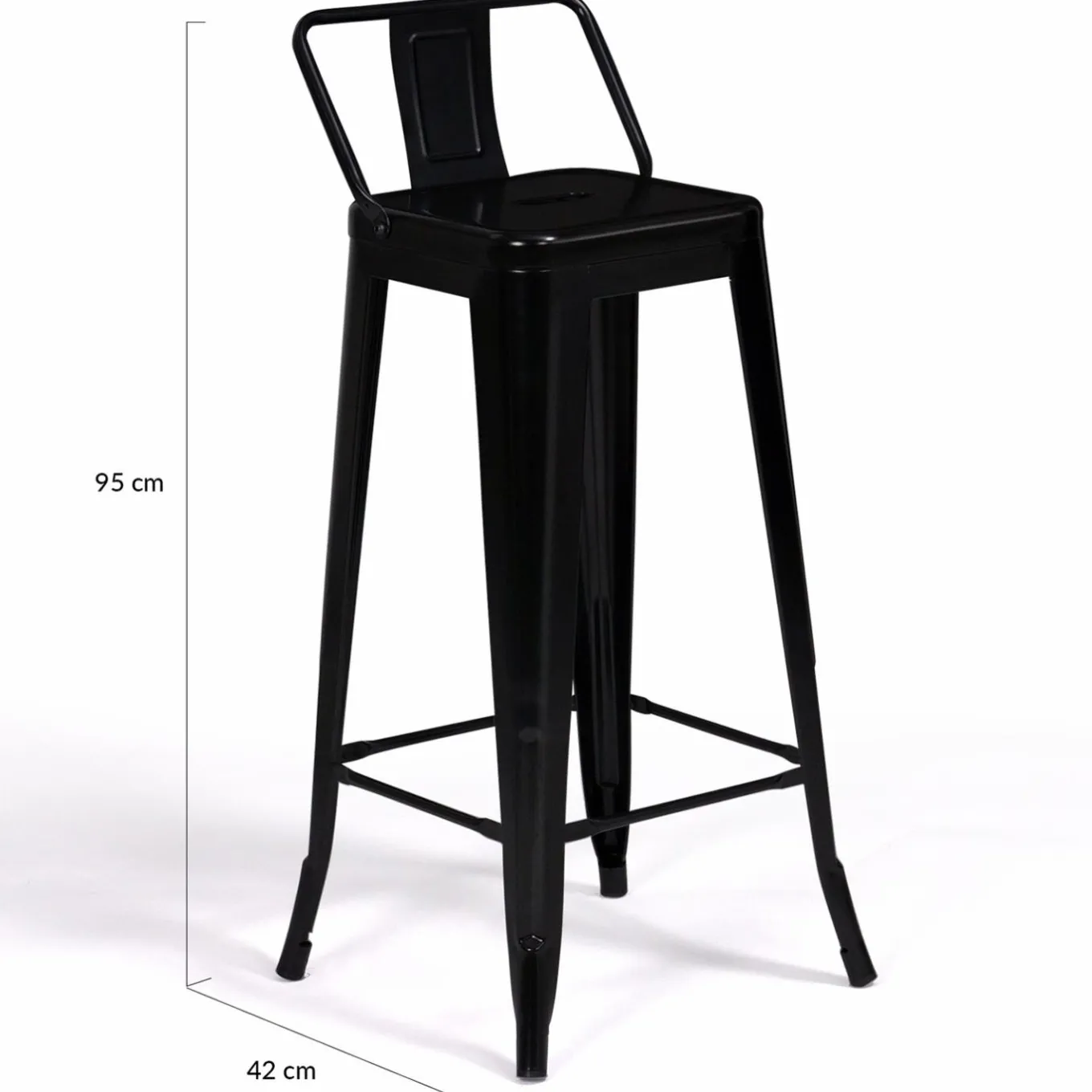 Besoin de nouveaux tabourets pas chers pour meubler votre cuisine ou votre salle à manger ? ID MARKET vous propose ces tabourets de bar noir métal pratiques, chics et tendance ! Le style loft factory s’invite dans votre pièce et s’intègre parfaitement à votre mobilier. Optez pour ce lot de 4 tabourets en métal avec dossier pour un intérieur moderne et design.
