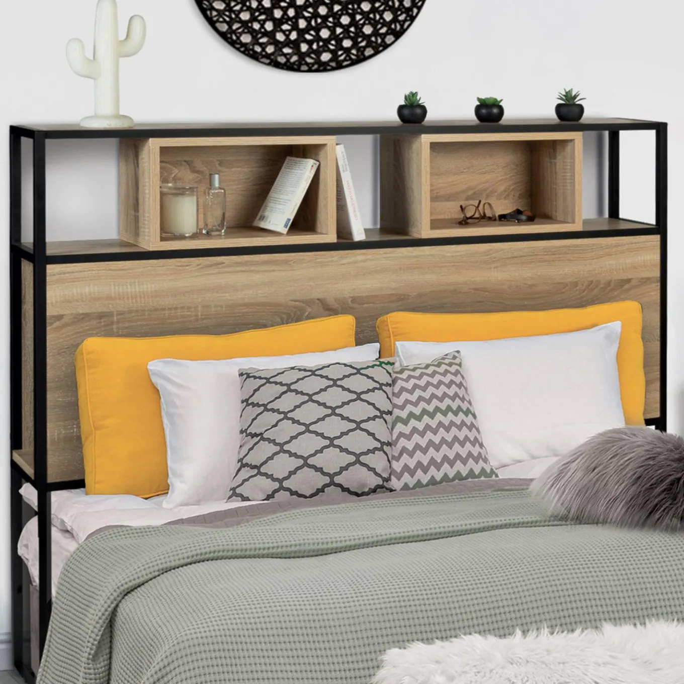 Ses nombreuses niches de rangement vous permettront de poser votre livre de chevet, votre téléphone ou vos produits de nuit sans avoir à vous relever.