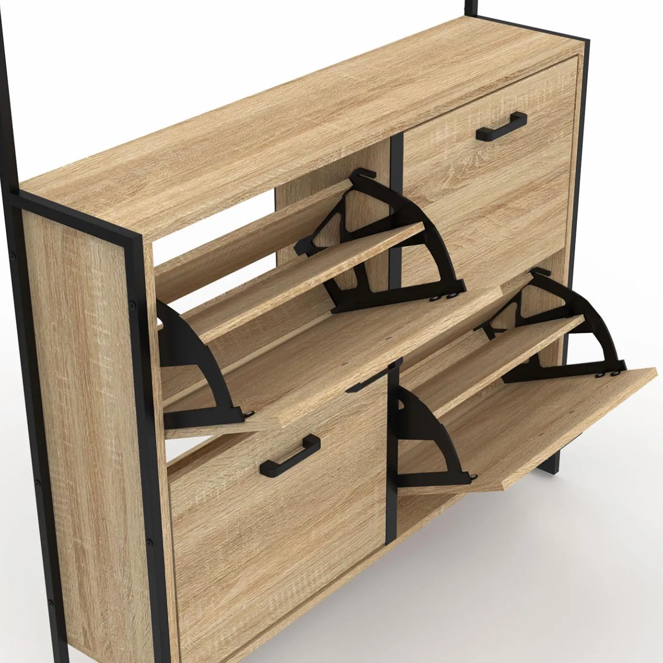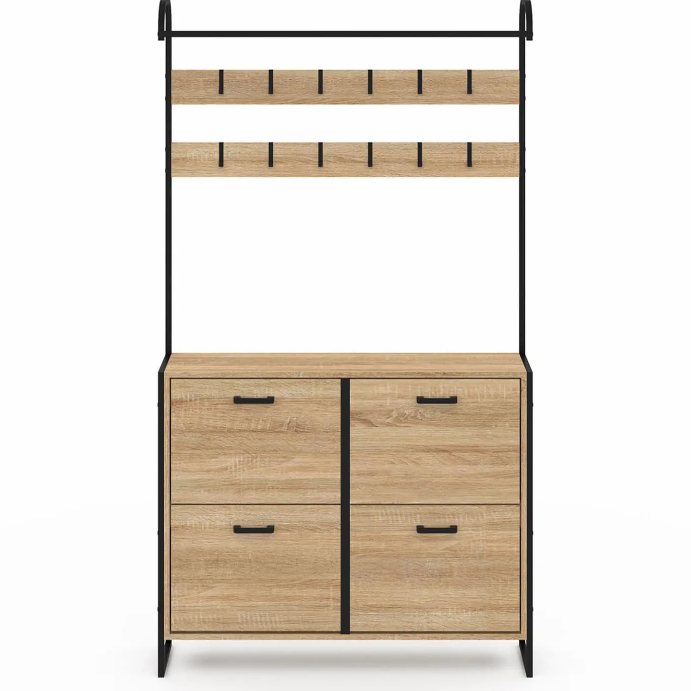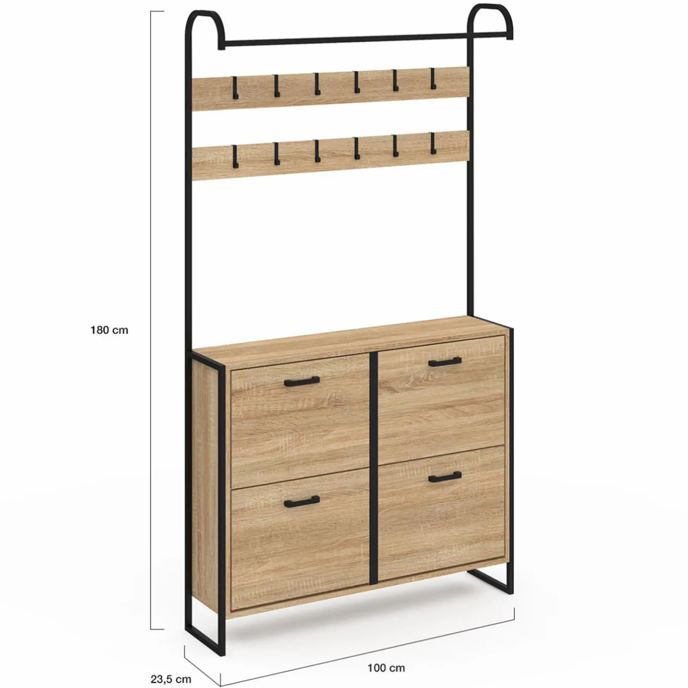 Craquez pour le mélange du bois et du métal et donnez un design industriel à votre couloir. Ce meuble chaussures porte-manteau 4 portes LUIS est pratique et esthétique.