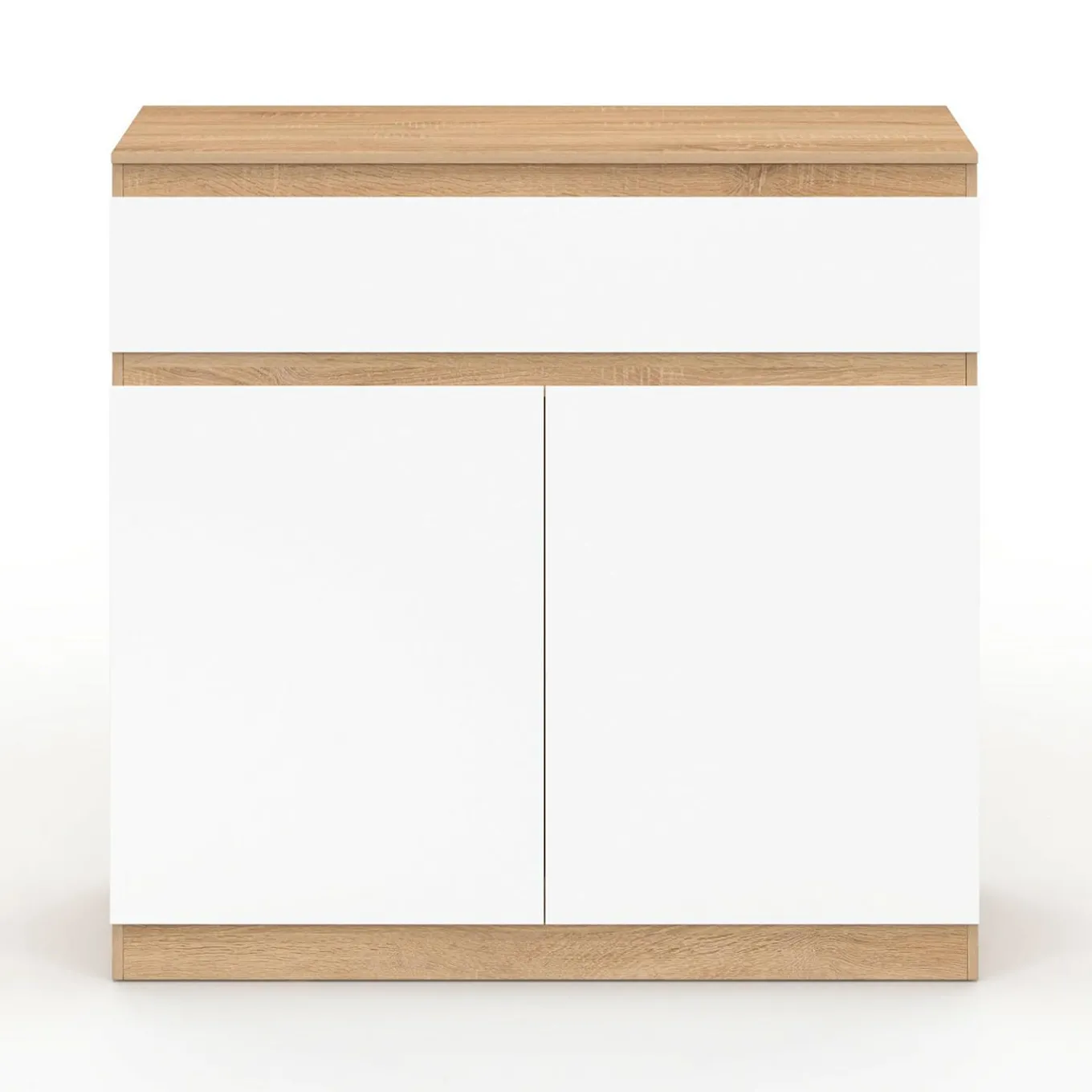 Avec son coloris bois façon hêtre et blanc tout en contraste, cette armoire à chaussures apporte une touche contemporaine et lumineuse à votre intérieur. Grâce à son format compact, ce meuble de rangement se glisse facilement dans n’importe quelle pièce, notamment une entrée, sans gêner la circulation.