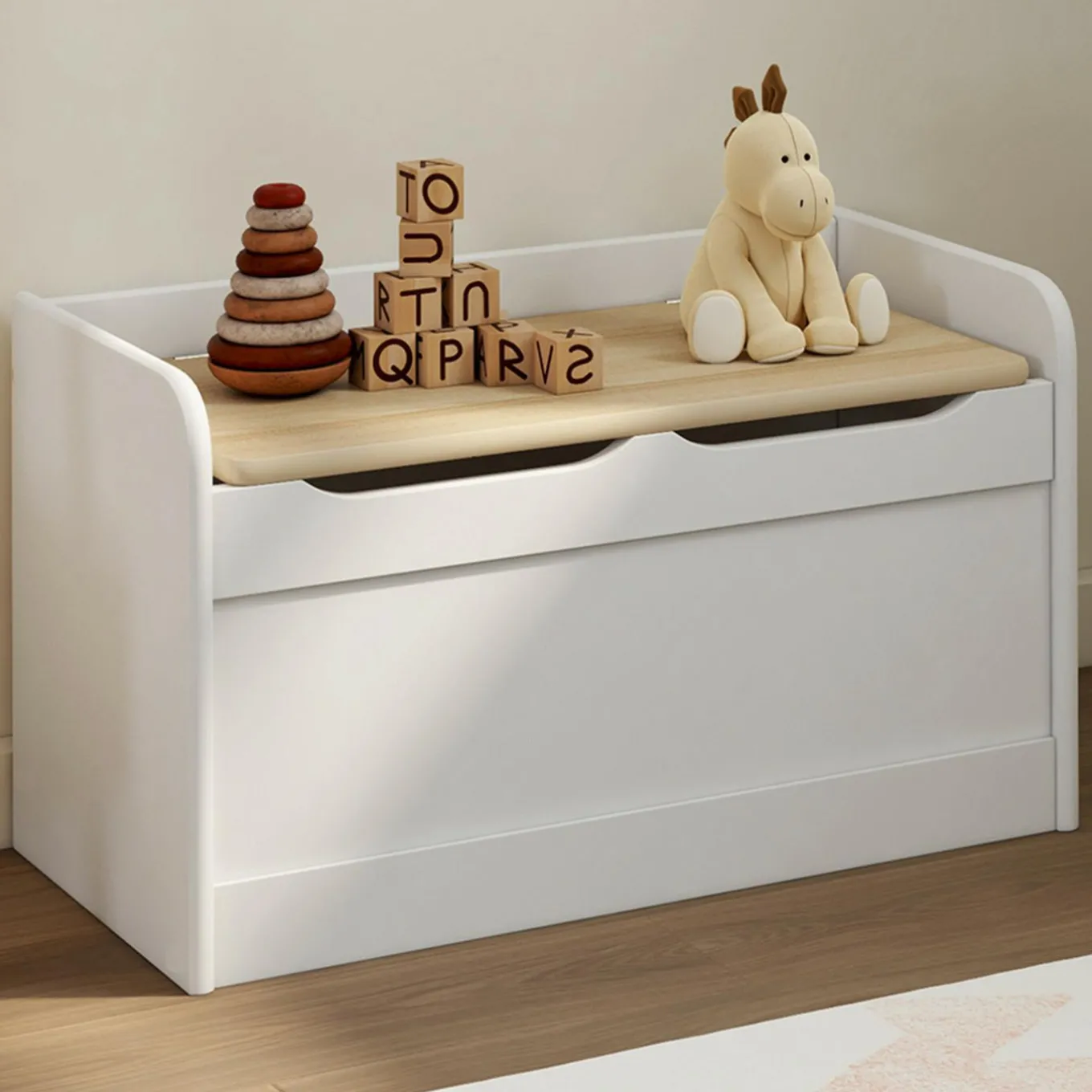 Banc coffre de rangement enfant LOGAN 60 cm en bois blanc et hêtre