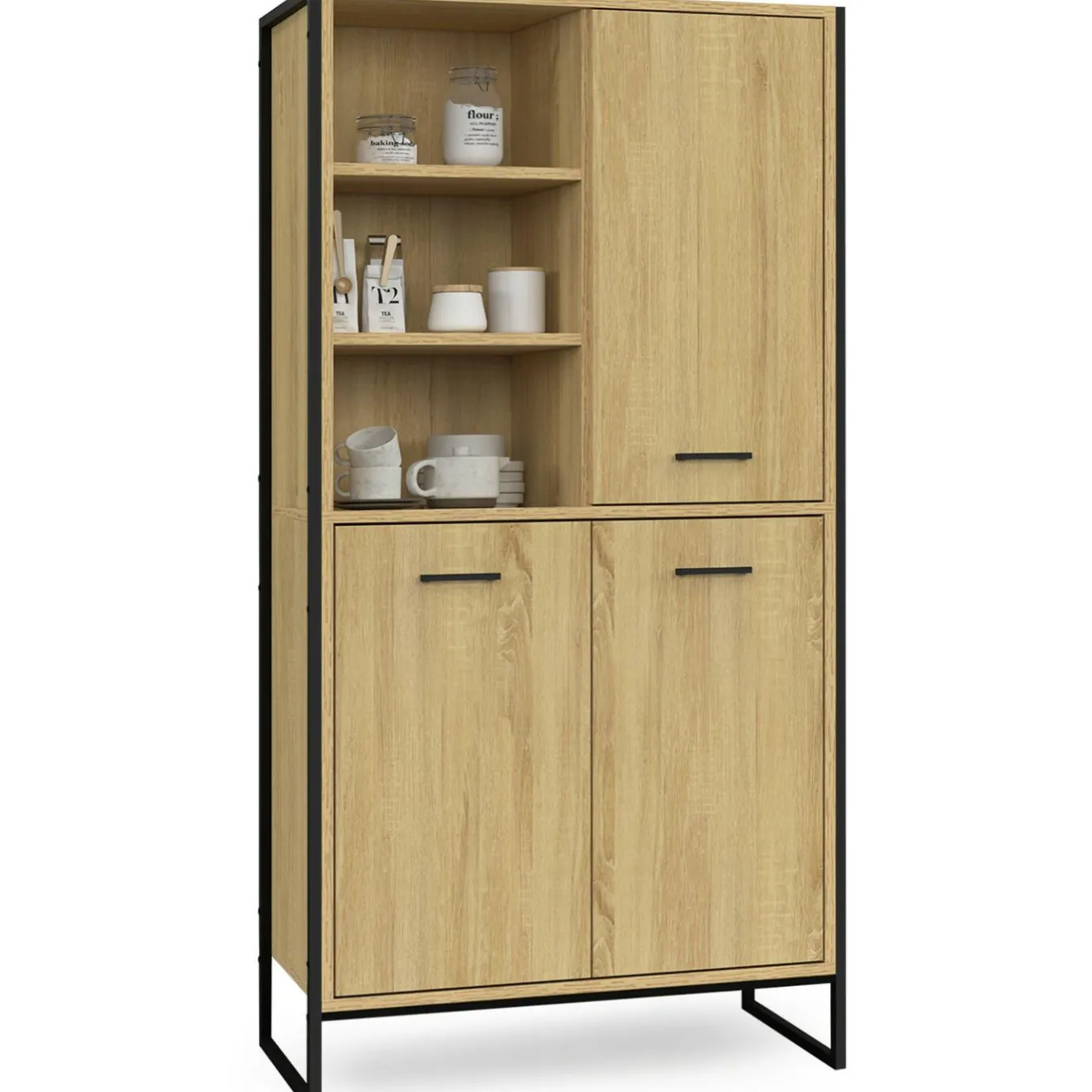 Gagnez en capacité de rangement avec sa hauteur de 160 cm tout optimisant l’espace de votre pièce grâce à son format compact. L’association du bois et du métal noir apporte un look industriel ultra tendance à votre décoration !