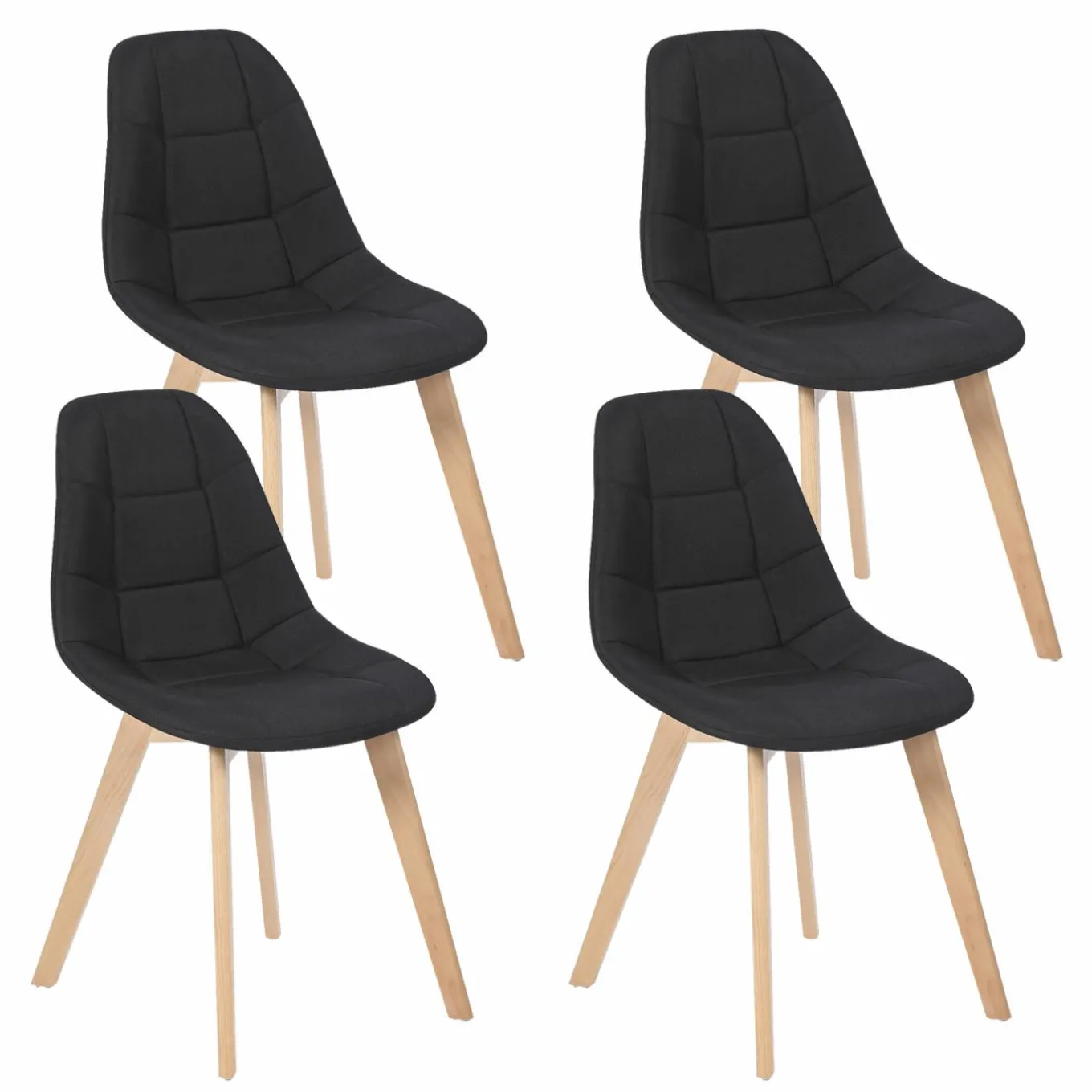 Lot de 4 chaises scandinaves GABY noires en tissu pour salle à manger