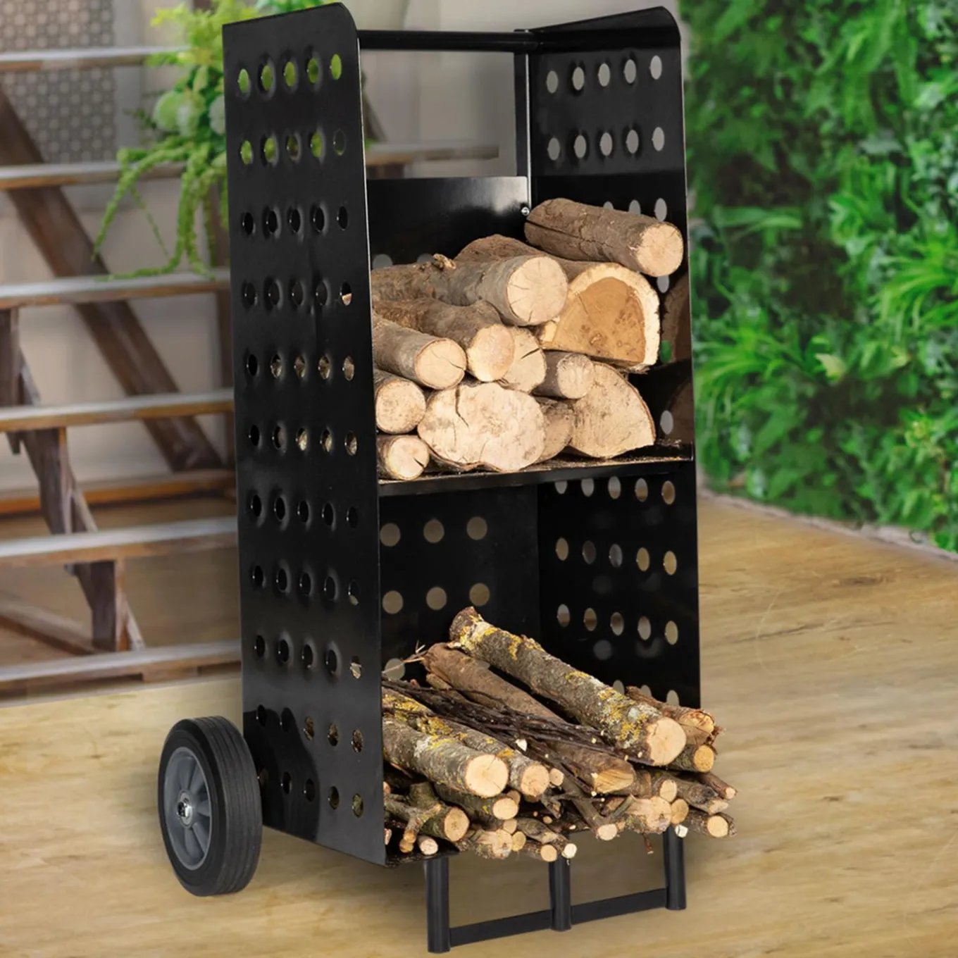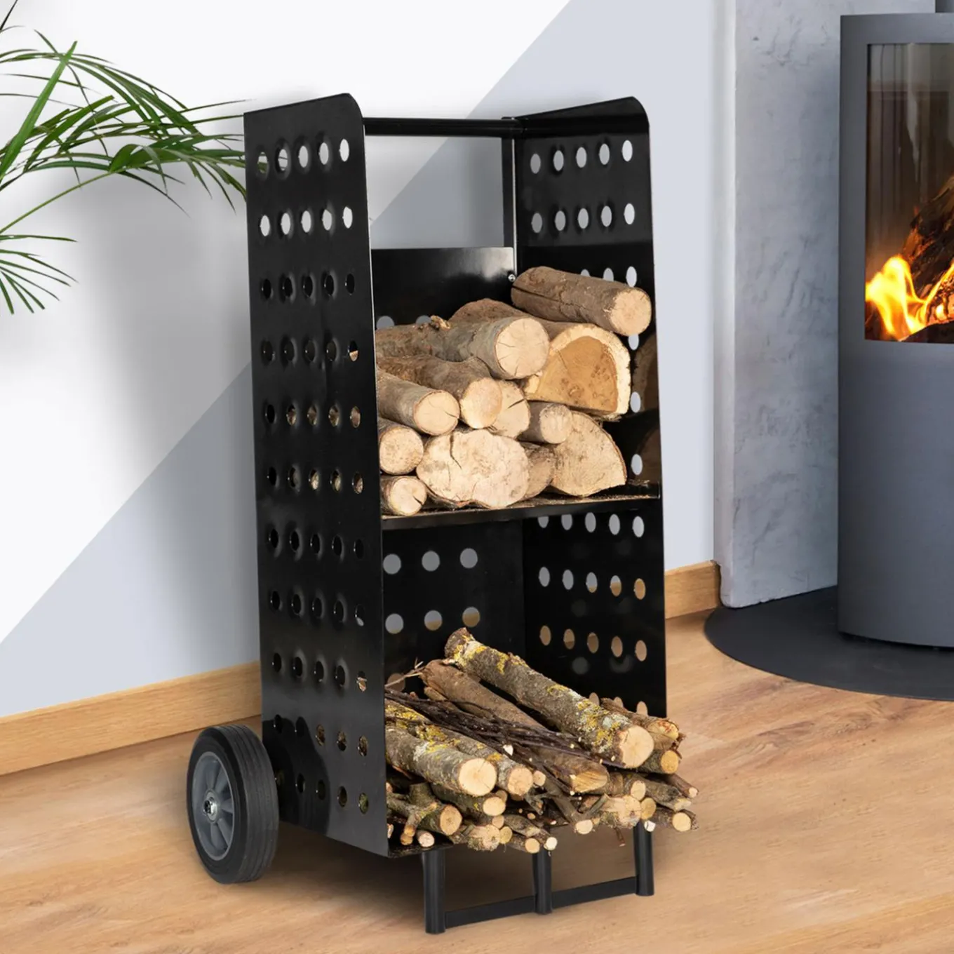Chariot porte bûches acier noir 40 x 40 x 100,5 CM pour cheminée